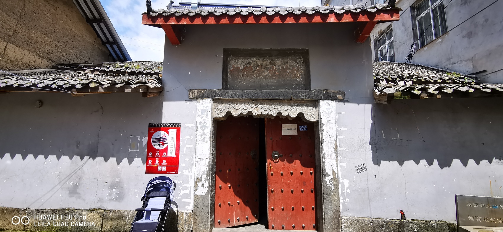 我脚步渐渐后退,如摄像机从特写镜头转换到全景镜头一般,眼里有了武侯祠全貌。但见它左右两旁被拥挤的民房牢牢包裹,那块“诸葛忠武侯祠”门额上方的屋顶,也全是横竖斜盖着层层瓦片,那些瓦片散落开来,与小街上其他民房无异。从大门上一块门牌号上,我记住了武侯祠的地理方位——越西县越城镇外南街54号。门外有一石碑,上书“越西县文物保护单位”。