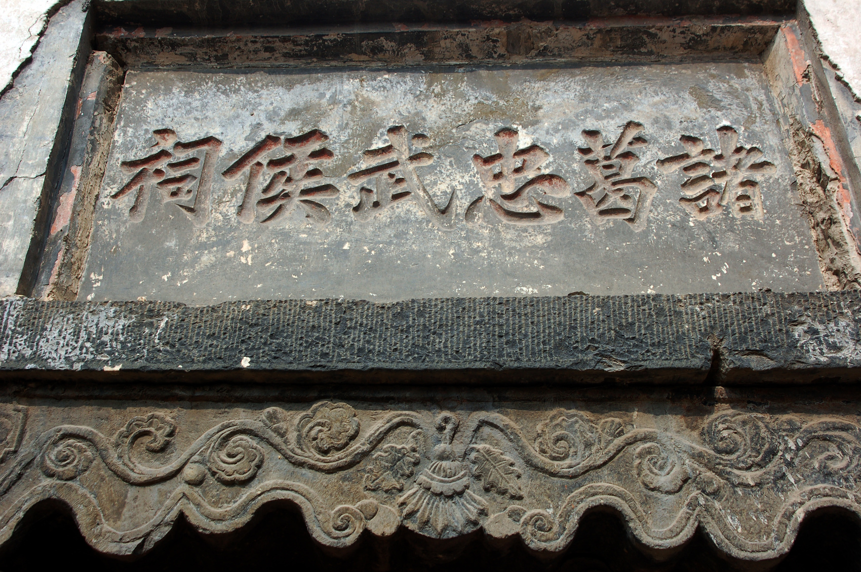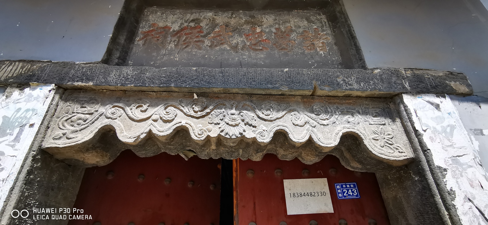初夏骄阳。我站在越西县一条名叫武曲的小街上,凝望着那块“诸葛忠武侯祠”的门额出神。斑驳的字迹任由时光浸噬,日渐模糊。不断进阶的灰尘,正在不惜一切地恣意掩盖这里的过往。我睁大双眼,仔细辨认那6个遒劲的正楷大字,字迹的描红正在慢慢老去,笔直的錾印仍清晰可见。坚硬的石材固执地镶嵌在门楣之上,顽强鼎起头顶那片历史烟云。托起这匾额的,还有一片石雕的祥云,石额上祥云正中间,一只朱雀振翅欲飞。