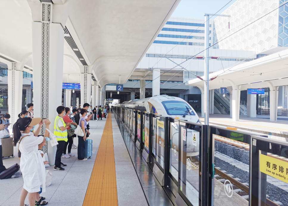全国首套适用于时速250公里及以下、适应不同车型的高铁智能站台门。中国铁路成都局集团公司供图