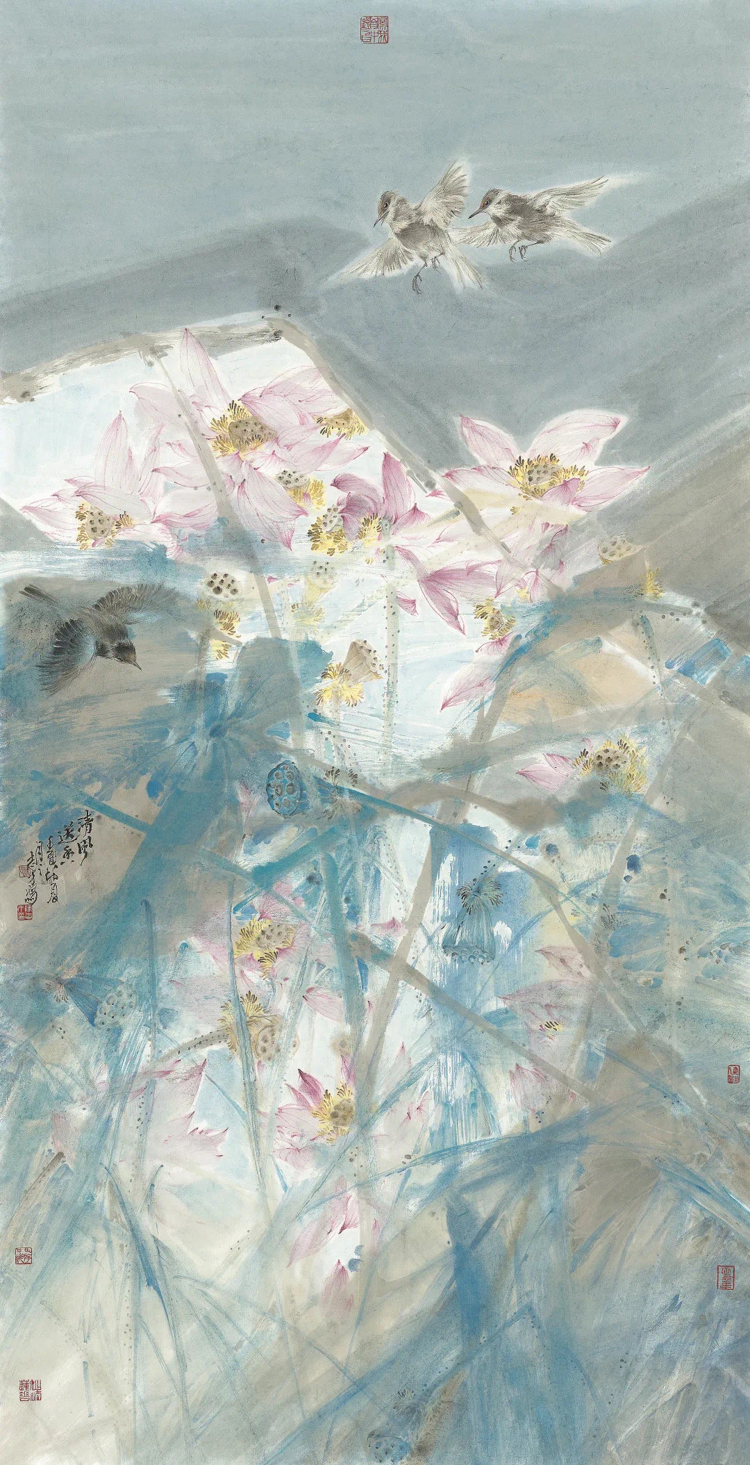 陈志才多年来深耕于花鸟画领域,形成了简逸、细腻且充满意趣的艺术风貌。此次展览聚焦于陈志才的荷花题材作品,力图通过这一系列绘画精品,呈现他在花鸟画创作、写生及教学方面的深思与探索。