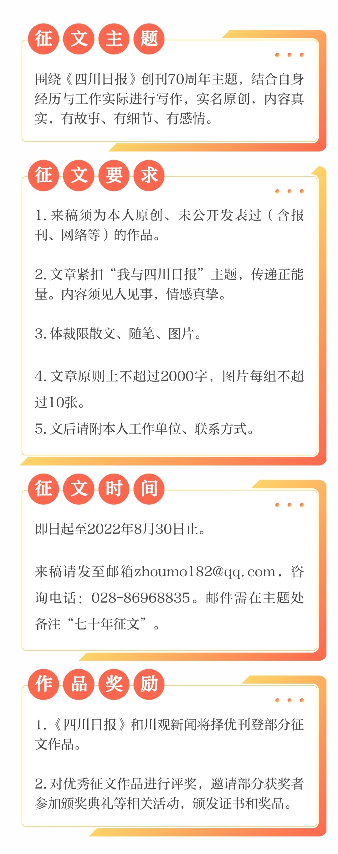 “我与四川日报”——《四川日报》创刊70周年主题征文活动正火热进行中,欢迎大家踊跃参与。详情见下图: