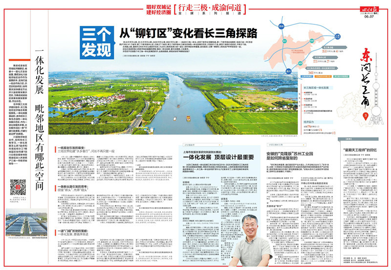 川渝毗邻地区合作,如何向长三角学习,一体化发展怎么抓?政府和市场如何分工?跨省园区如何建?报道组深入苏浙皖沪三省一市毗邻地探寻。