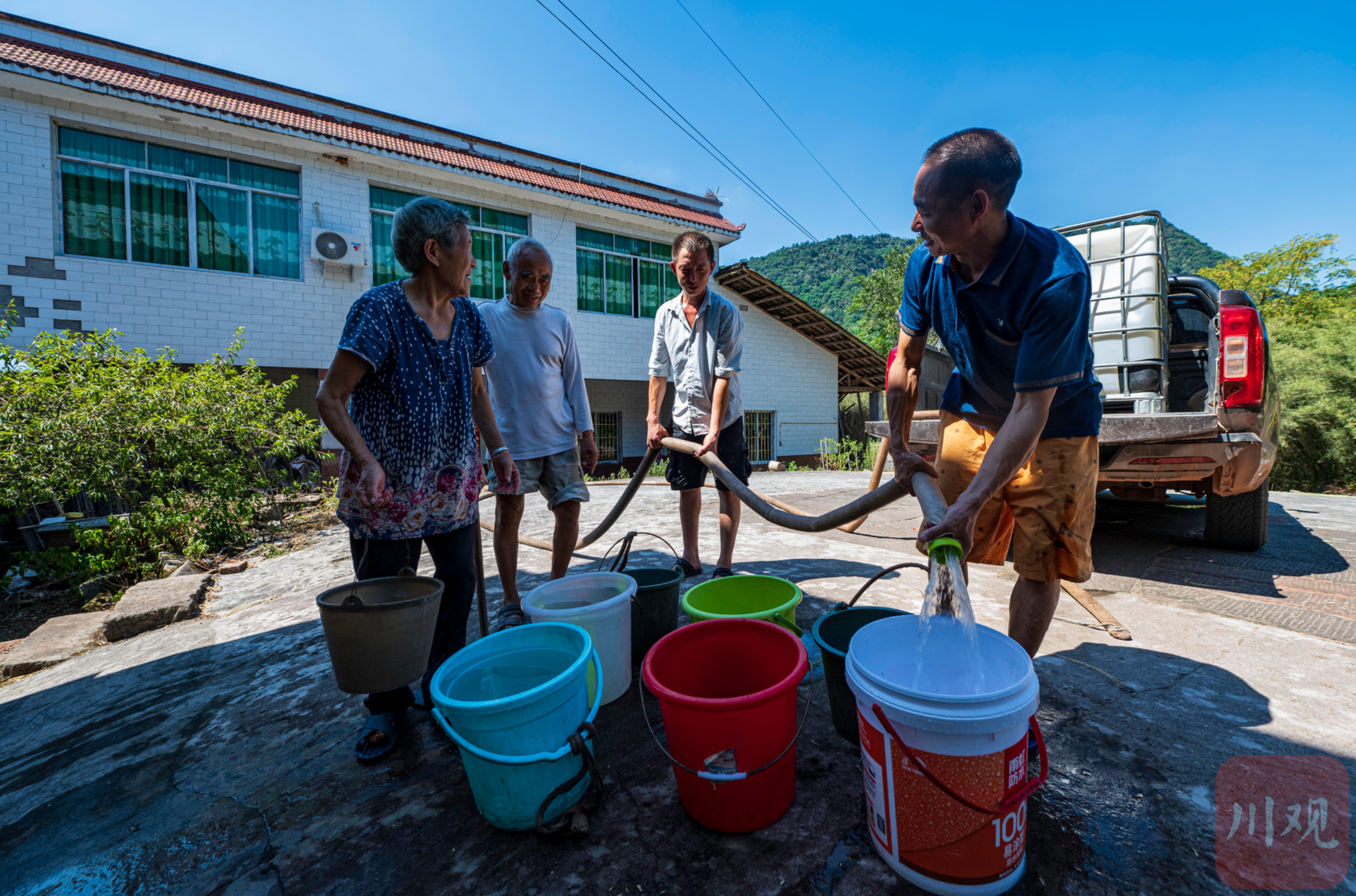 为了解决群众的饮水难题,全体村社干部都投入到抗旱保供上来,大家每天从早到晚都在找水、送水一线上。“我们每天至少要送水六趟,每趟要花3个多小时。”高德平说,“我们不光送水,还要检查森林防火,大家都没有一天休息。”从8月8日开始,村里建的微信群有群众反映缺水情况,那时村上干部就在送水和防火一线上,从早上5点多一直要忙到晚上近12点,基本连续工作12小时以上。