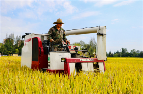 如今,农业机械成了秋收主力军,让农民当上了“甩手掌柜”,收割机在稻田里转几个来回,偌大的一片稻谷便收割完毕。看着从收割机的“嘴”里吐出来的稻谷,村民笑着告诉记者,“现在好方便哟,一亩面积的稻谷,十分钟不到就收割完了。”