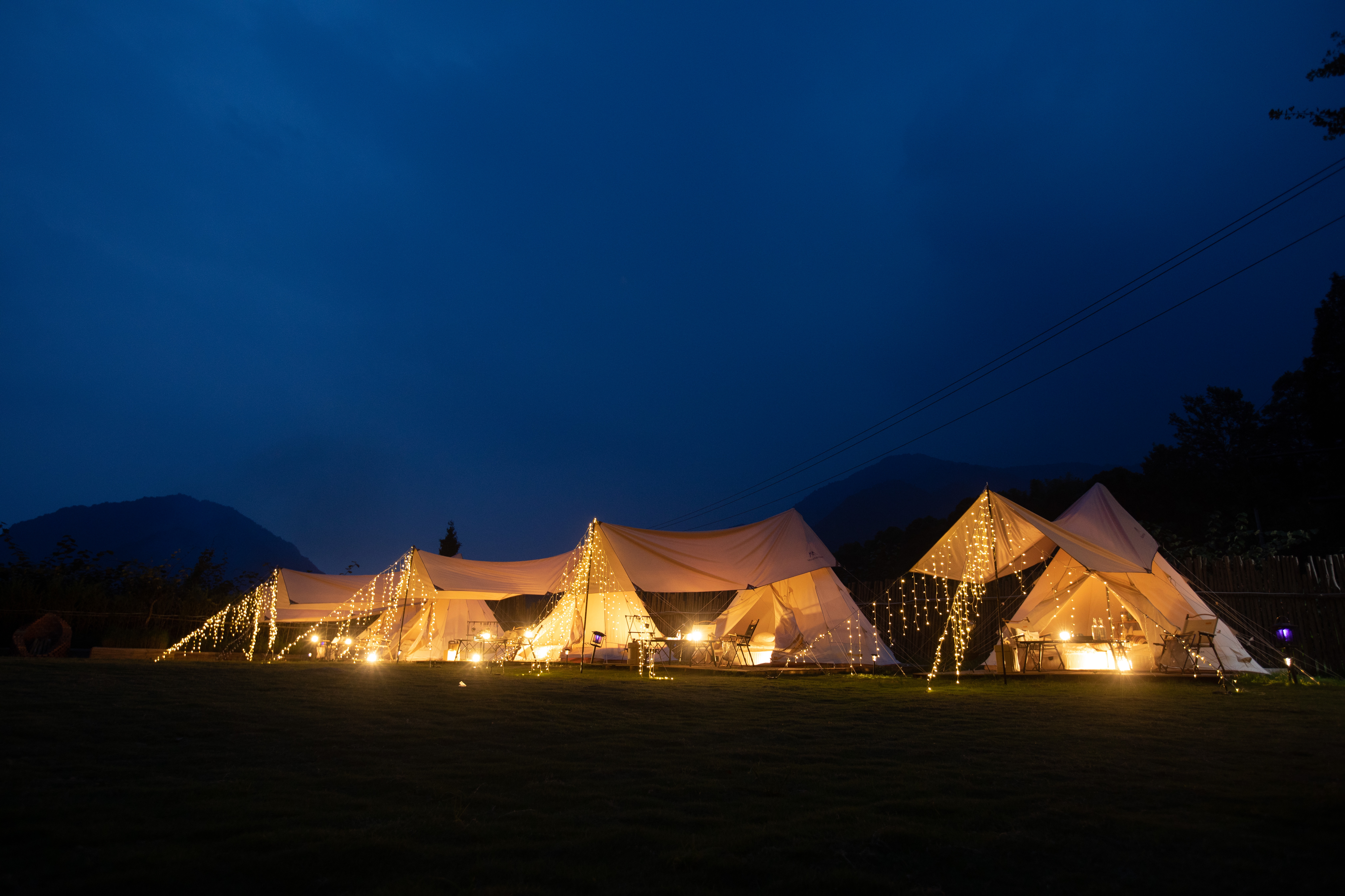 夜间的露营基地