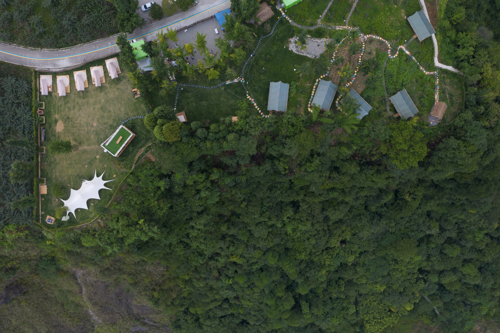 “漫步的云”露营基地经过精心选址,坐落于飞虹社区庙坝塔子坪,占地面积约10亩,通过租用村民的闲置宅基地,重新进行土地整治规划利用打造而成,这里位于半山腰一平地处,视野开阔、环境优美。韩国介绍,在保持原有生态风貌基础上,露营基地特别精心营造了一些拍照打卡点,既有木屋帐篷等住宿区,也有户外露营休憩场所,白天除了可以在露营基地放松休闲外,还可以到周边农户种植基地中开展采摘等活动。