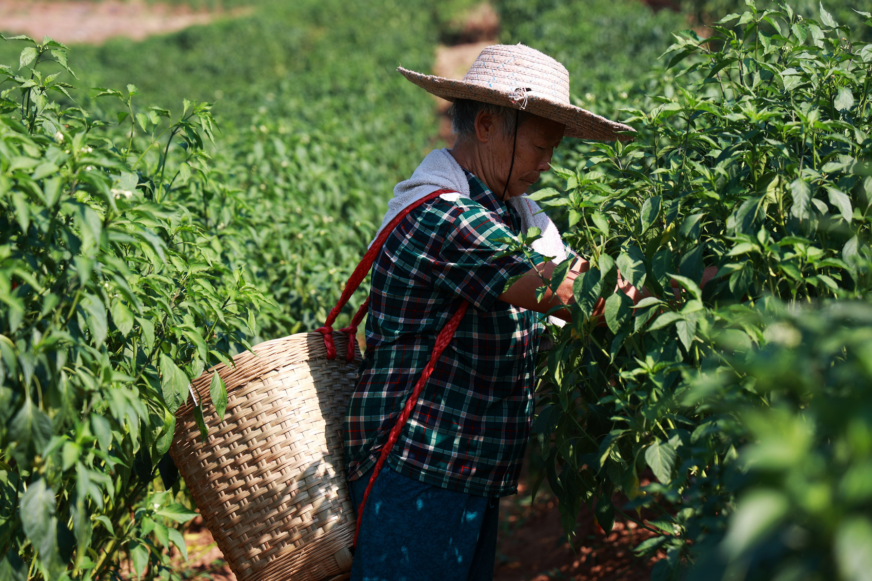 8月15日上午9点,气温已达35°C,和天气一样“火辣”的还有内江威远县新店镇民富村地里的七星椒。辣椒丰收正当时,每天都有辣椒由绿变红,七星椒种植基地负责人胡林在辣椒丛中查看辣椒长势。