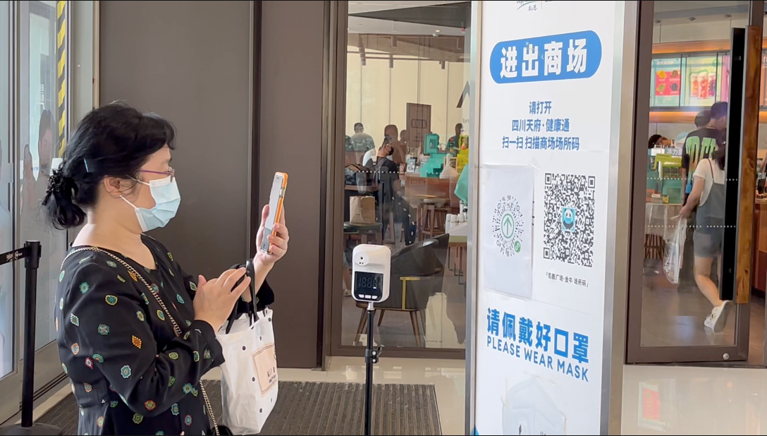 市民在进入商场前扫场所码