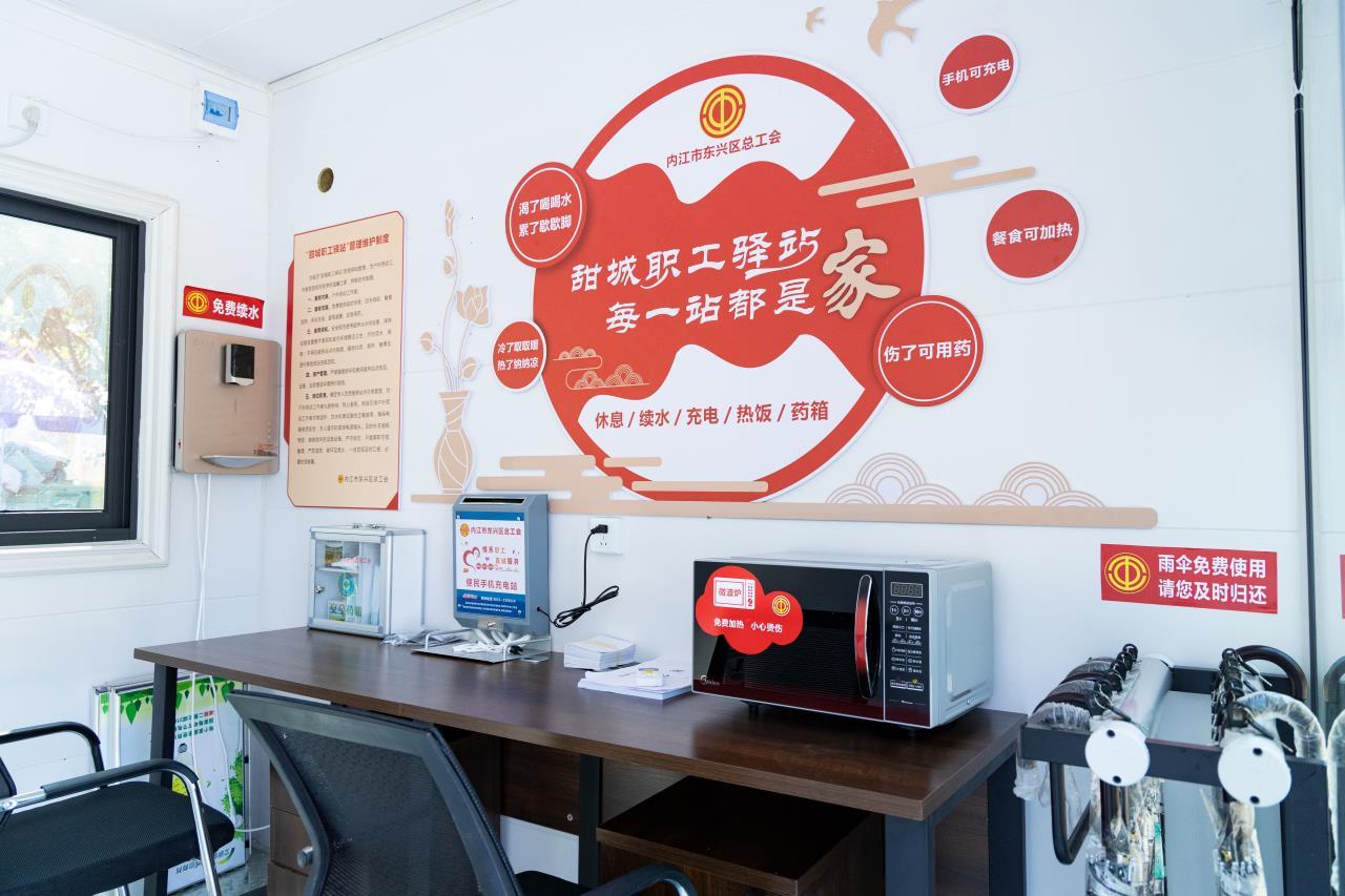 近年来,内江市总工会聚焦广大户外劳动者“吃饭难、喝水难、休息难、如厕难”等现实问题,扎实开展甜城职工驿站建设工作,切实满足户外劳动者实际需求。截止目前,全市各级工会筹集资金120余万元,建成甜城职工驿站150个,其中工会自建3个,与相关单位共建147个。