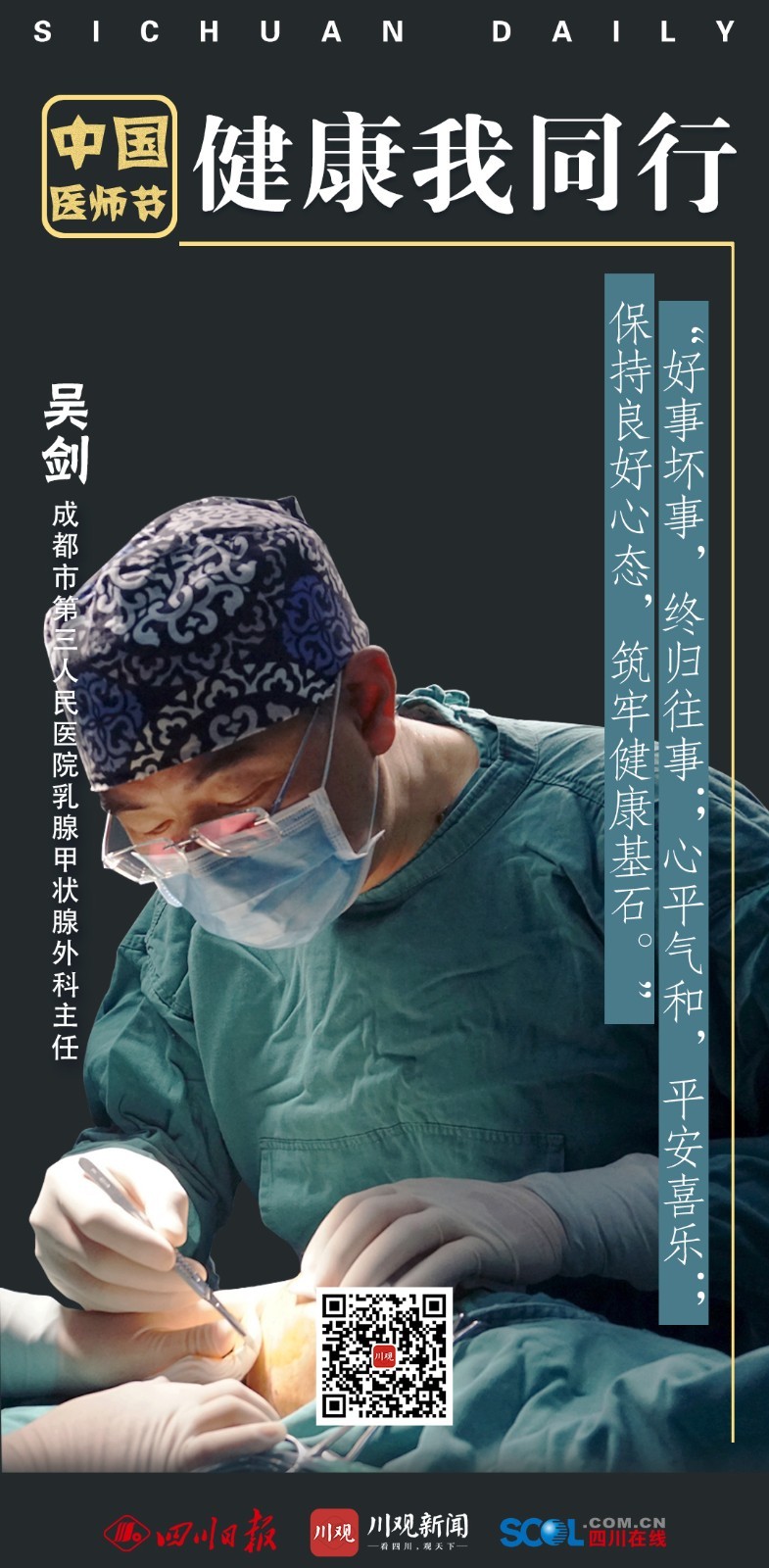 2022年8月19日是第五个“中国医师节”。来自成都市9所医院的医生,为大家送上健康金句,祝福大家身心健康,快乐生活每一天。