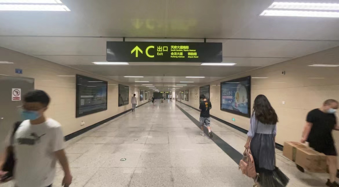 乘坐地铁一号线在华府大道下车,从C2口出站,穿过一个颇具现代感的地下通道,就到了远大购物中心的b馆。