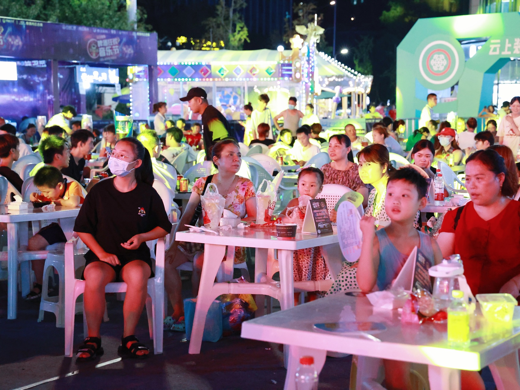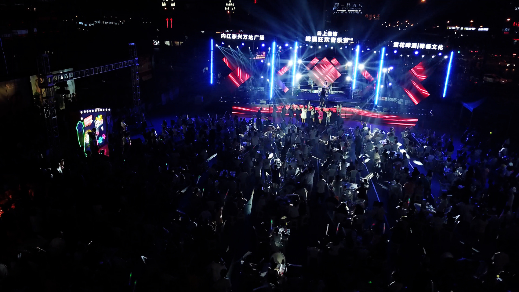 8月18日晚,内江万达广场二号门外广场,多家企业联合举办的啤酒音乐节火热进行中。