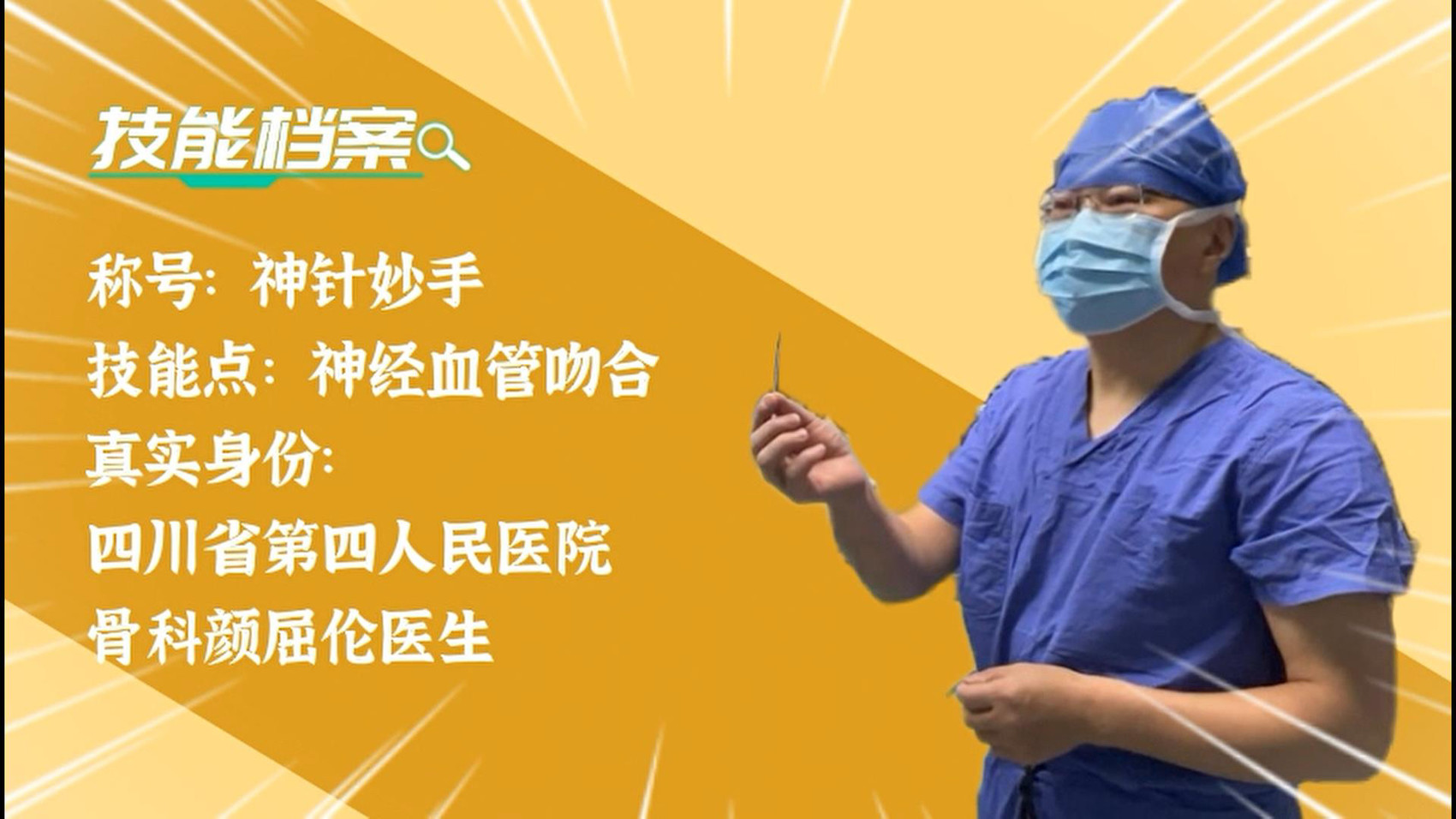 从事骨科临床工作28年的四川省第四人民医院骨科医生颜屈伦的“技能点”之一,是显微镜下神经血管的吻合技术——他可以在显微镜的帮助下,用缝线将两根已经断开的血管或神经精准吻合起来,从而降低或避免受伤肢体截肢率。“心一定要静,手一定要稳、准、巧,只有这样才能做好这个手术。”除此之外,要想将手指那直径不足1毫米的血管连接起来,还得通过大量的训练,就比如在显微镜的帮助下,缝合两根直径1毫米的塑料管。
