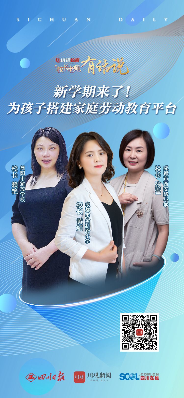 即将秋季开学,今天,第十一期《校长、老师有话说》如约与您见面,成都市三所小学的校长在川观拍客的镜头前,就搭建家庭劳动教育平台,促进亲子共成长,谈看法,提建议。