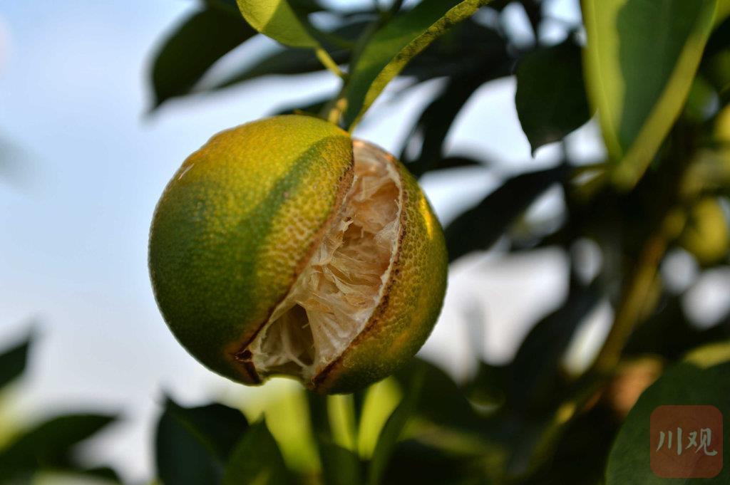 8月15日,内江市资中县重龙镇尖峰村血橙种植园里的柑橘因高温干旱天气已经爆裂。