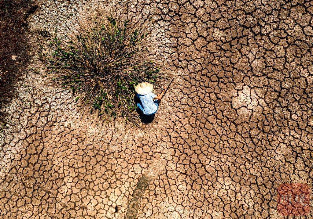 8月13日,泸州市纳溪区打古镇双家村的小龙虾养殖户高启民在虾塘里查看小龙虾,由于干旱少雨,养虾塘里的水已经干涸了。