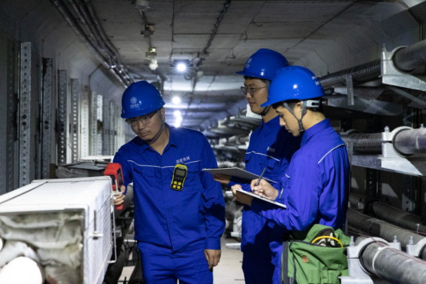 随后,董上义和他的同事们进入开关间进行检修,对于存在的问题进行研判。“基本上,我们都会准备两套工作制服,一套湿透后晾干,两套换着穿。”不到早上七点,内江温度已超过30℃,董上义以及他的同事们的衣服上已经汗水顺着面颊流淌,打湿了衣服。