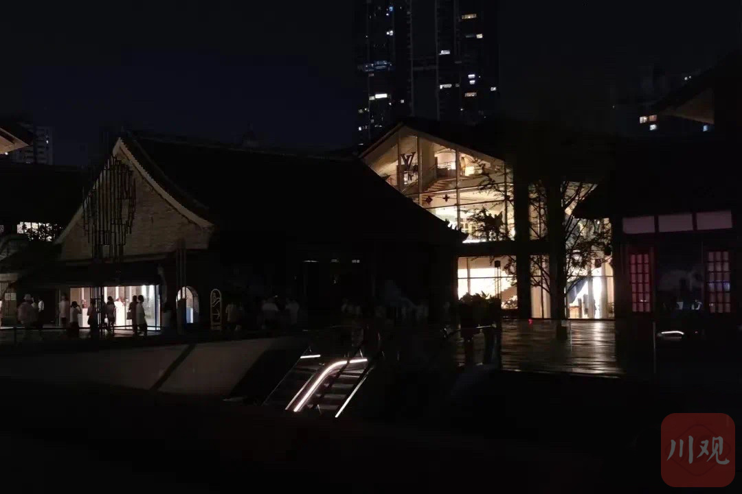 8月22日,川观新闻记者来到成都春熙路商圈探访,这里高楼林立、大型商超楼宇聚集,银石广场裸眼3D屏幕等户外商业显示大屏均已处于关闭状态,昔日灯火通明的各大商场已关闭了大部分灯光,多个写字楼的中央空调已停止供冷。