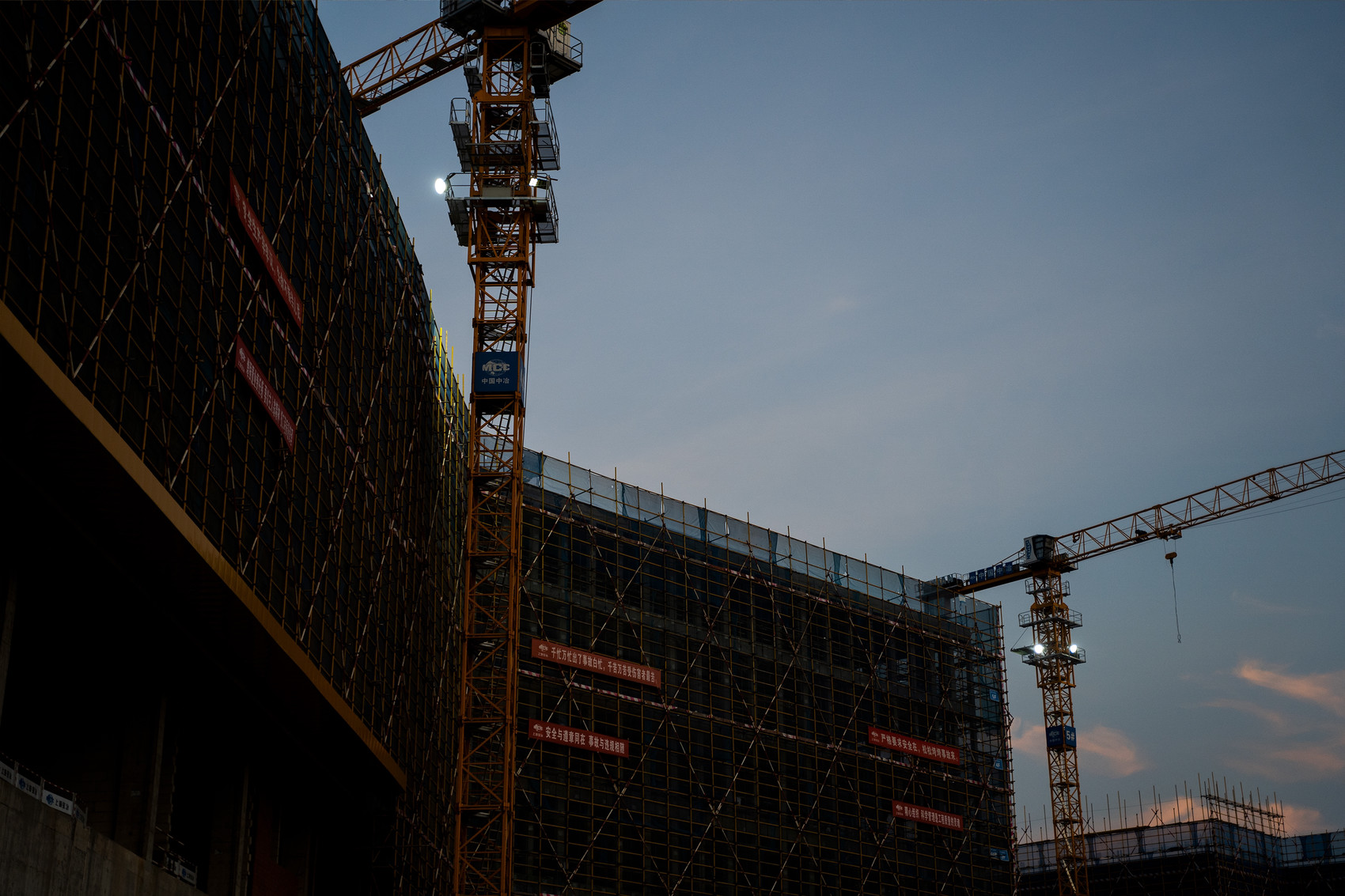 8月23日晚上8点,夜幕降临,内江软件与信息技术服务外包产业园D区项目现场,一台台塔吊机上亮起了灯光,为夜间施工提供照明条件。