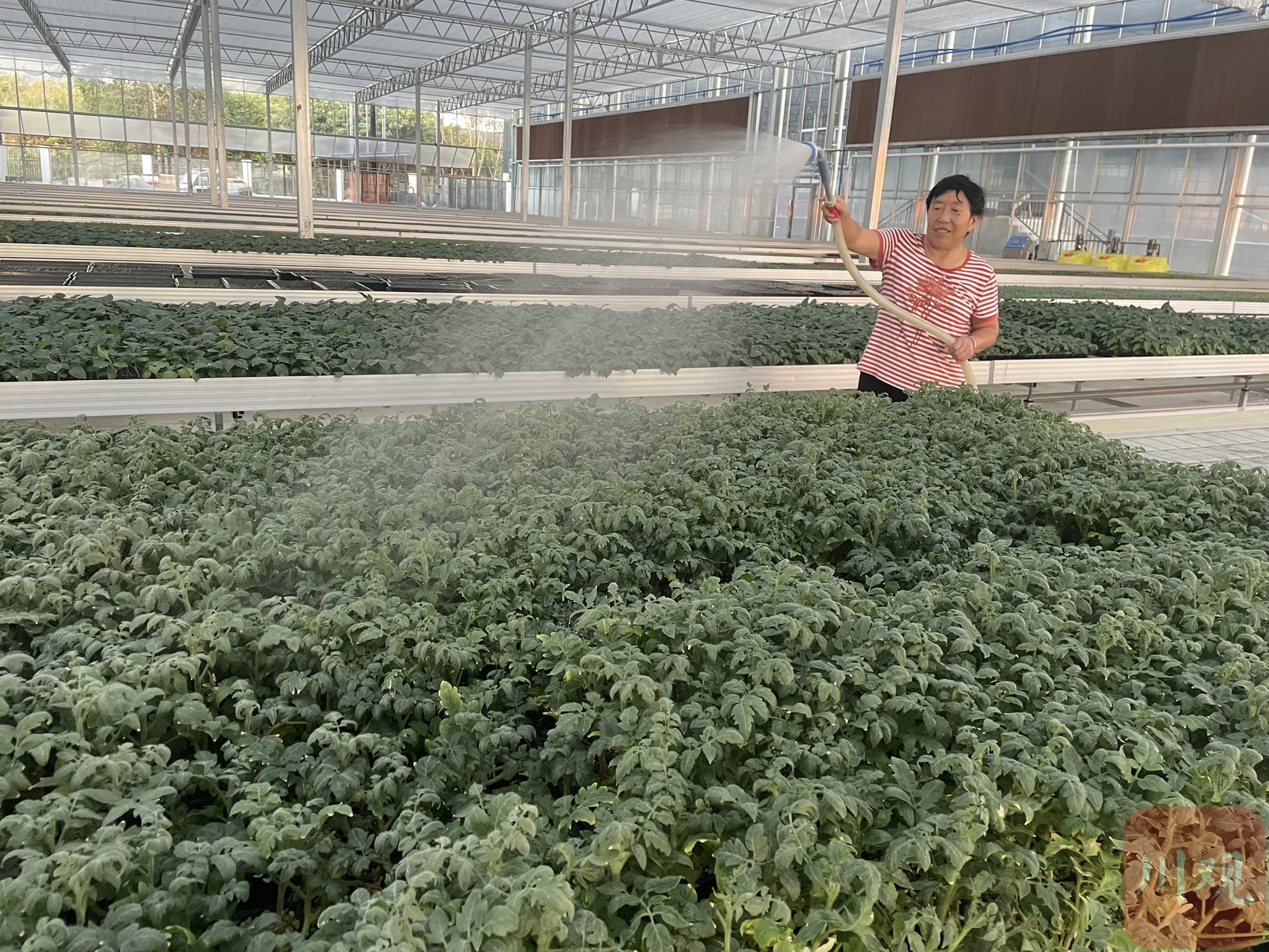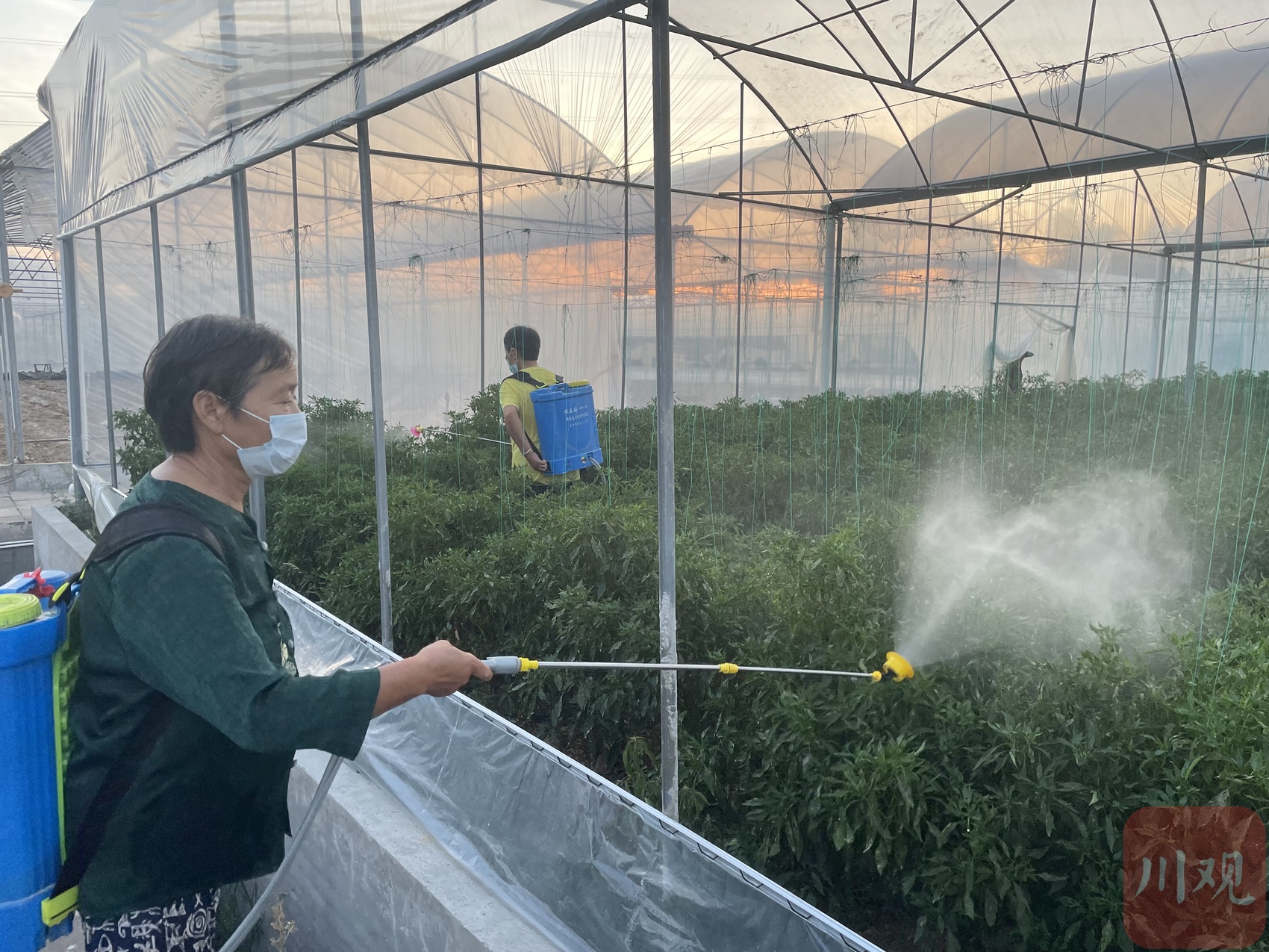 环视大棚,村民背着喷雾器给辣椒打杀虫剂,或舞动锄头翻整土地,或检查水培车间中育苗墙滴灌情况。