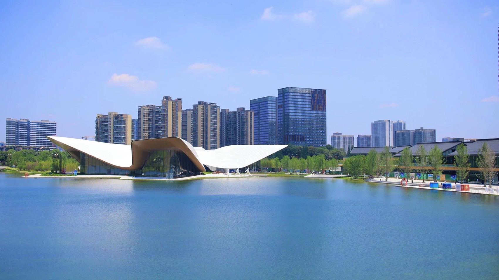 其中,“三坊”中以文博坊为代表的天府美术馆、天府人文艺术图书馆、成都当代艺术馆,三大文化地标均已全部呈现。由迎桂湖、芳菲湖、荷花湖组成的“三湖”也已全部开放。