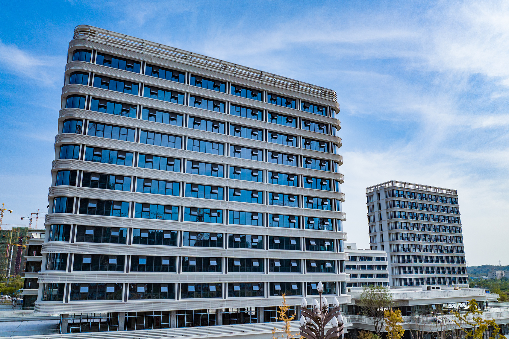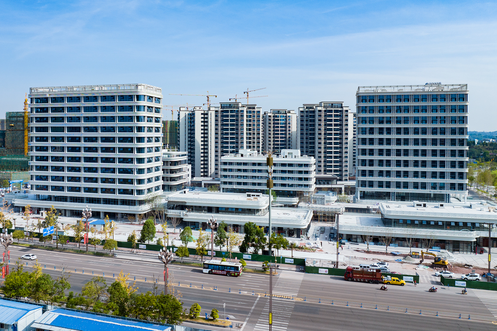 8月24日,内江高新科创园B区项目现场,一栋栋蓝白色的建筑拔地而起,整个区域已初具雏形。此时,现场的工人正在进行路面铺设、外装收尾等工作。“目前,整个B区项目主体建设已基本完成。预计今年9月项目就将进入验收阶段,并同步开展景观打造。”该项目现场负责人黄新伟介绍。