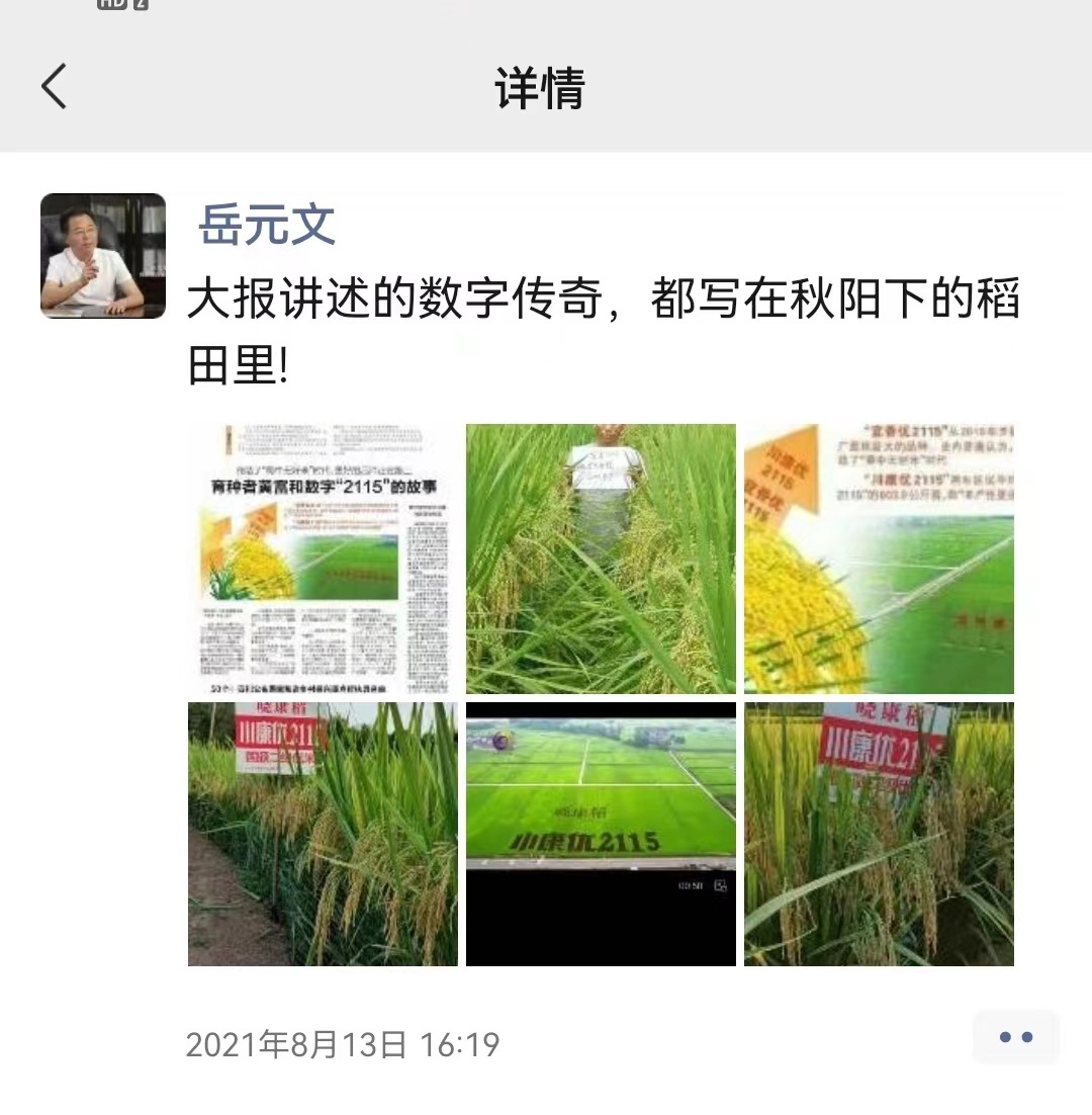 你们追踪报道到优质品种的路上风雨无阻,从不缺席。我们的技术人员下田,你们也跟着一起,即便是40°C左右的高温,我们都一起战斗在田间,陪着“宜香优2115”一起成长。