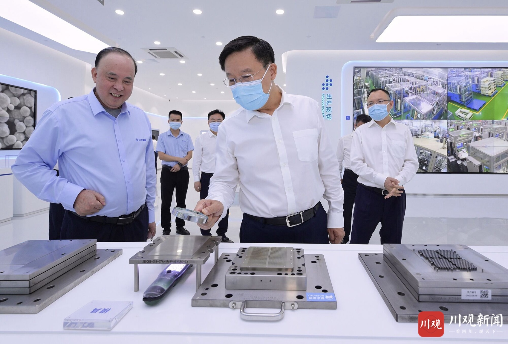 8月26日,省委书记王晓晖到德阳经开区三环科技公司调研,在企业展厅观看产品展示,了解企业生产经营和产品研发、产能、应用及市场推广等情况。