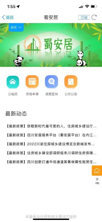 8月28日,记者从四川省住房和城乡建设厅获悉,近日,“四川省住房保障管理服务平台”(以下简称“蜀安居”平台)已正式上线“天府通办”并开始受理办件,群众可“一点即办”申请公租房 。
