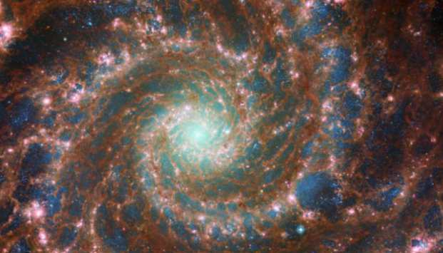 据美国有线电视新闻网当地时间8月30日报道,由美国国家航空航天局与欧洲航天局合作开发的哈勃望远镜和詹姆斯·韦伯望远镜近日捕捉到了幻影星系的新图像,该星系的正式名称为M74,位于距离地球3200万光年的双鱼座。