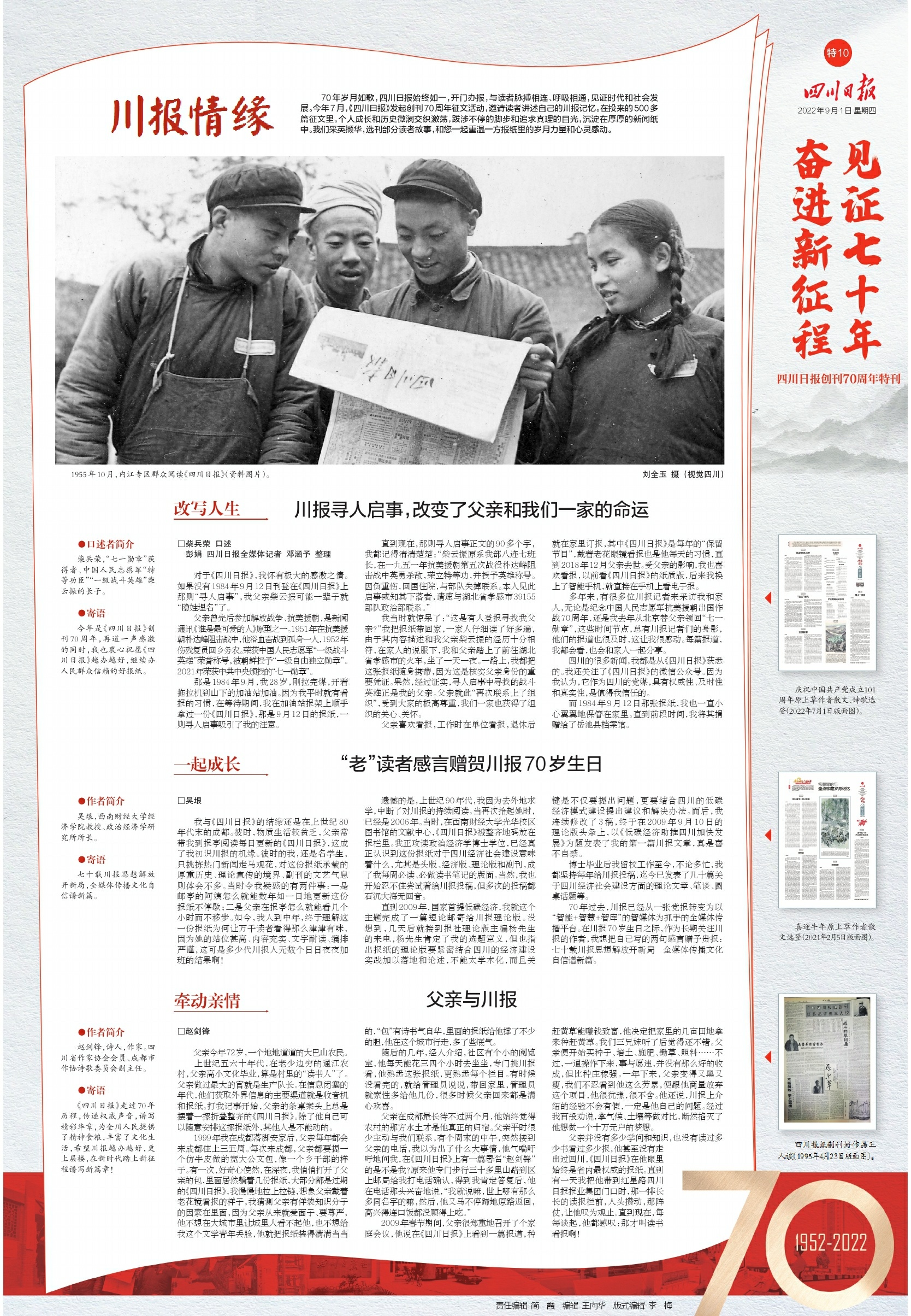 《四川日报》走过70年历程,传递权威声音,谱写精彩华章,为全川人民提供了精神食粮,丰富了文化生活,希望川报越办越好,更上层楼,在新时代踏上新征程谱写新篇章!