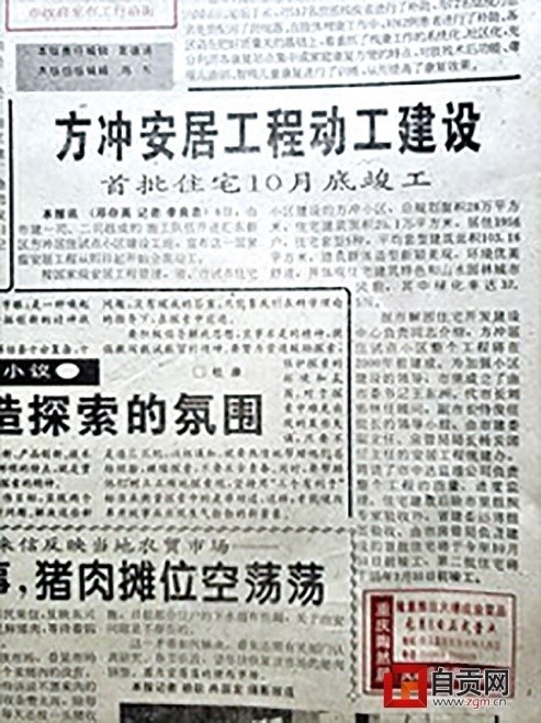 《自贡日报》一版报道《方冲安居工程动工建设》。