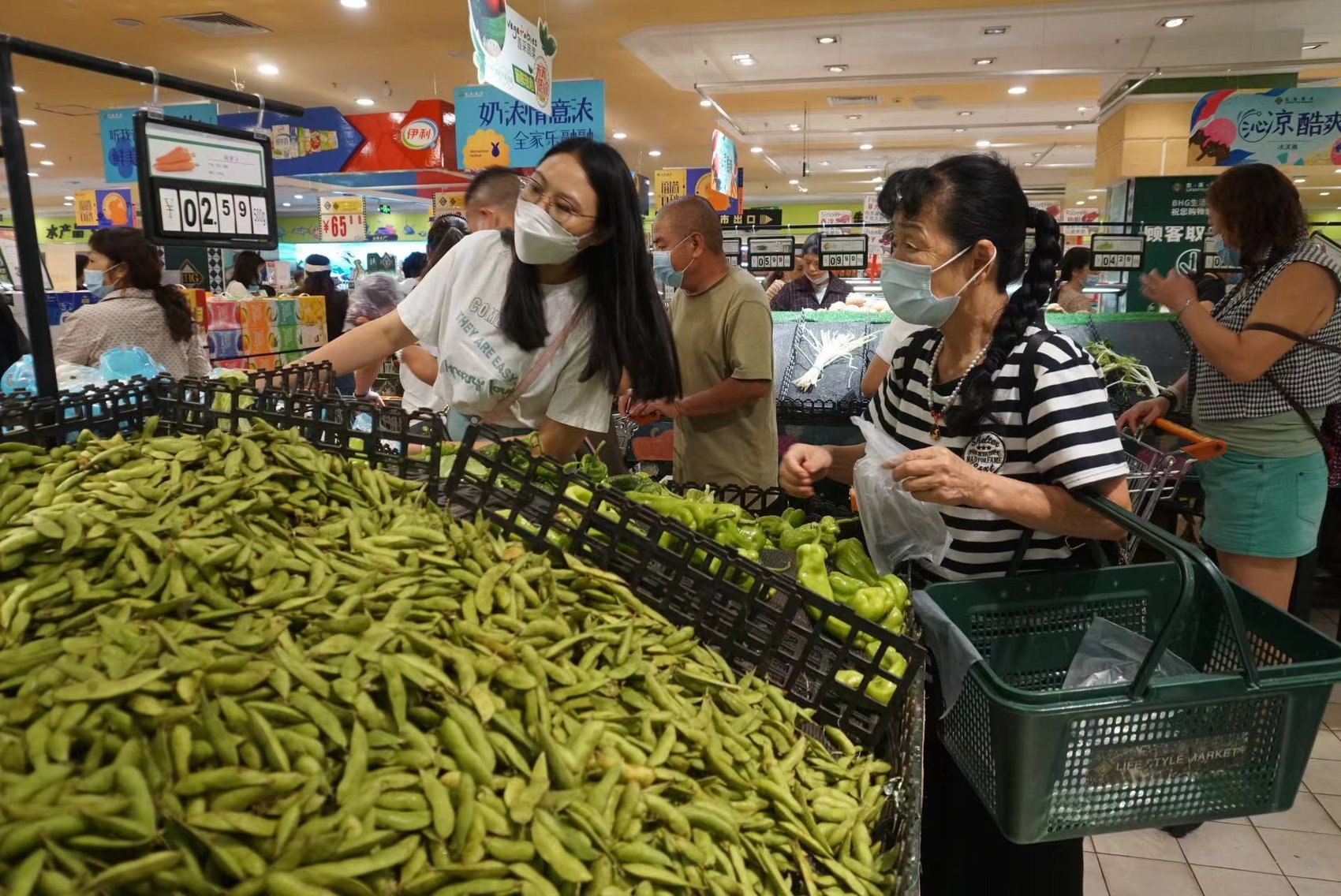 超市里市民正在选购蔬菜。陈姝妤 摄。