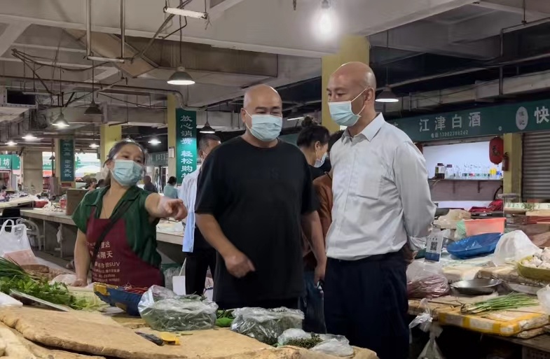 攀枝花市市场监管局工作人员询问商家菜价。湛璐霜 摄。