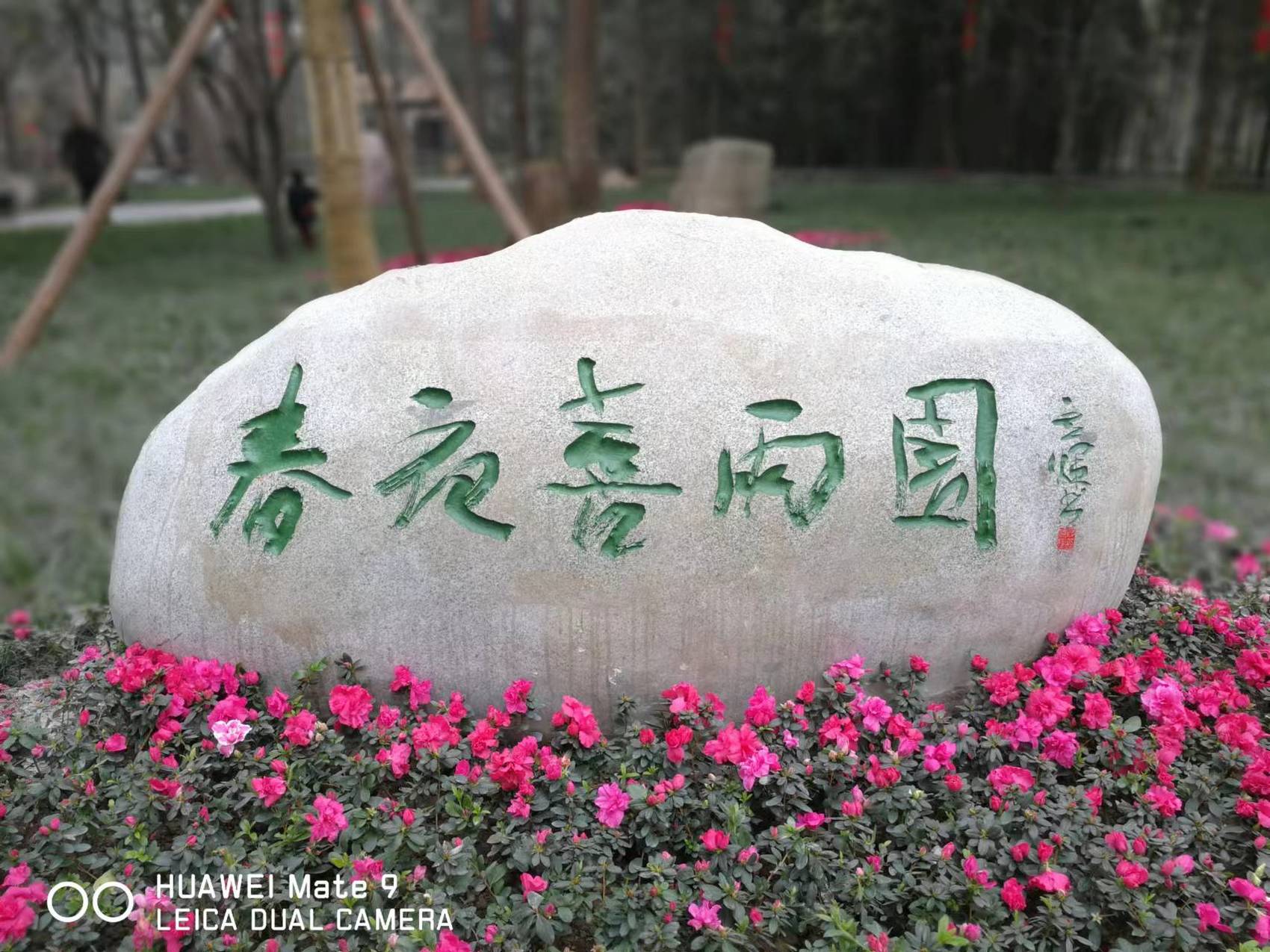 著名书法家何应辉书“春夜喜雨园”,成都杜甫草堂博物馆内,龙永华刻石作品