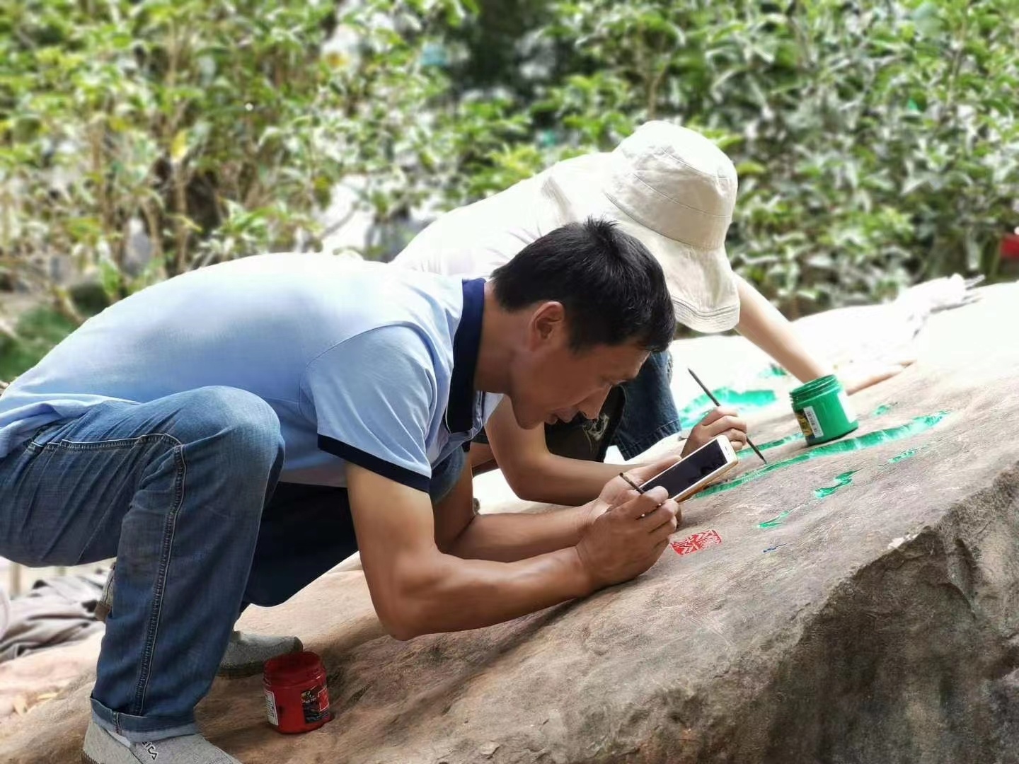 当然,电脑只能起到辅助作用,要将书法作品的神韵,原汁原味地复刻在冷冰冰的石头上,需要的仍是过硬的“手上功夫”。龙永华介绍,完成一通碑刻,要经过双钩、雕刻、拓印、精修等繁琐的流程,每一步都力求准确传神。