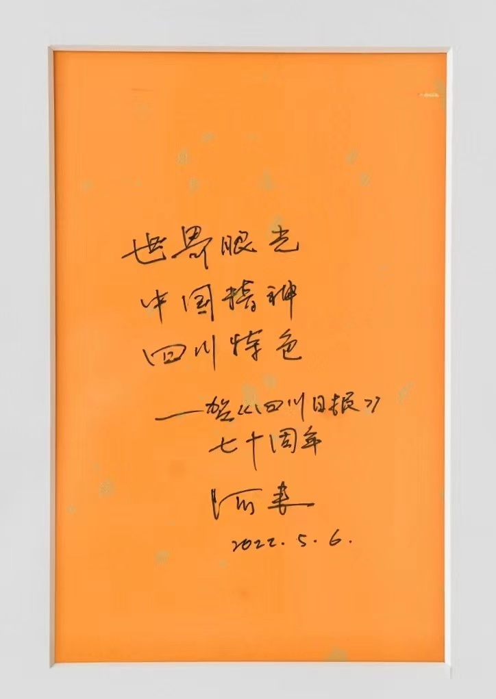 一张报纸,能够走过70个年头,是一件非常了不起的事情。2022年,我的老朋友《四川日报》迎来了创刊70周年,要我写点什么,我想了想,写下了“世界眼光 中国精神 四川特色”。我认为,这是对《四川日报》70年一个恰当的概括,也是我对这张报纸由衷的赞美。