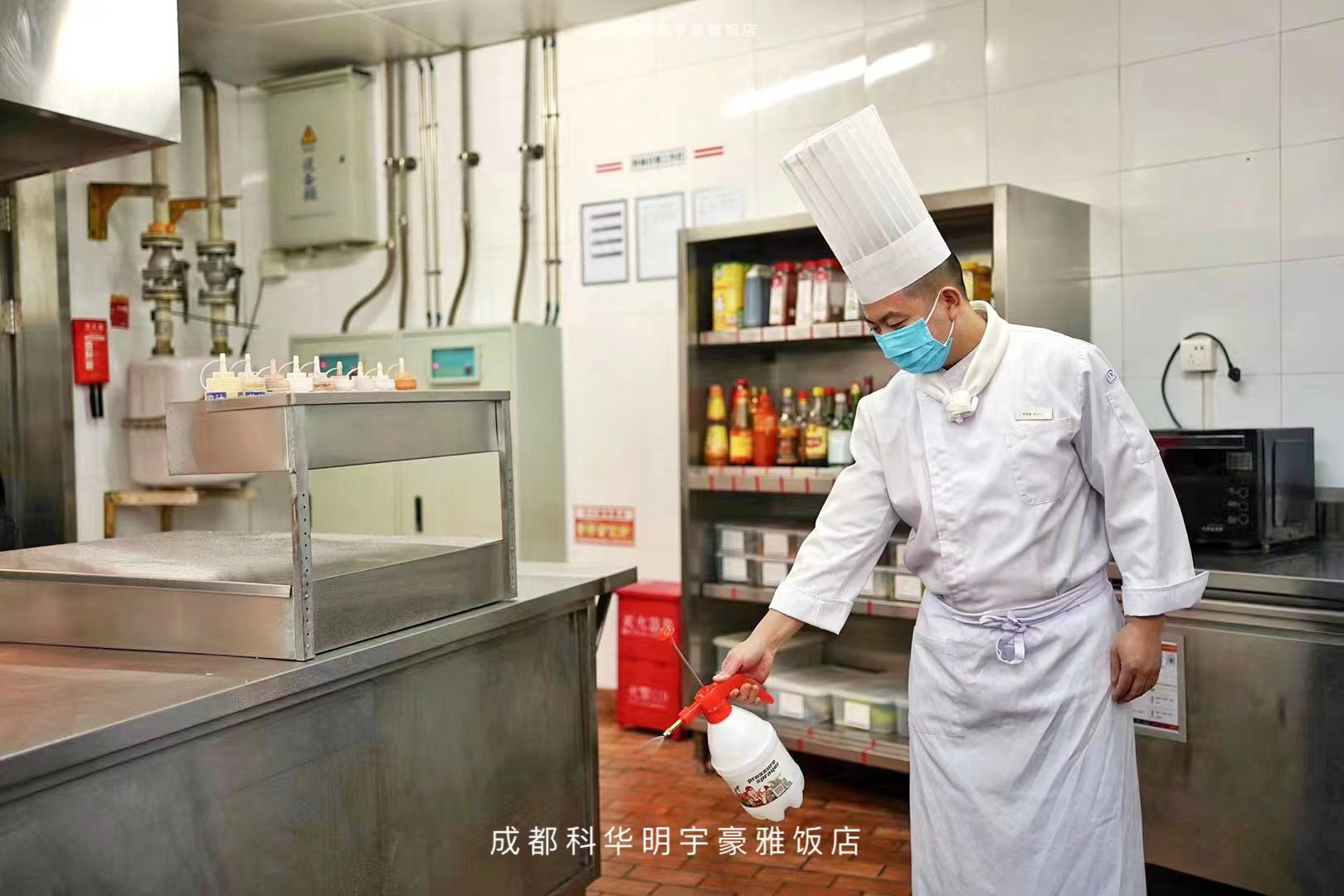 成都科华明宇豪雅酒店厨房进行清洁工作