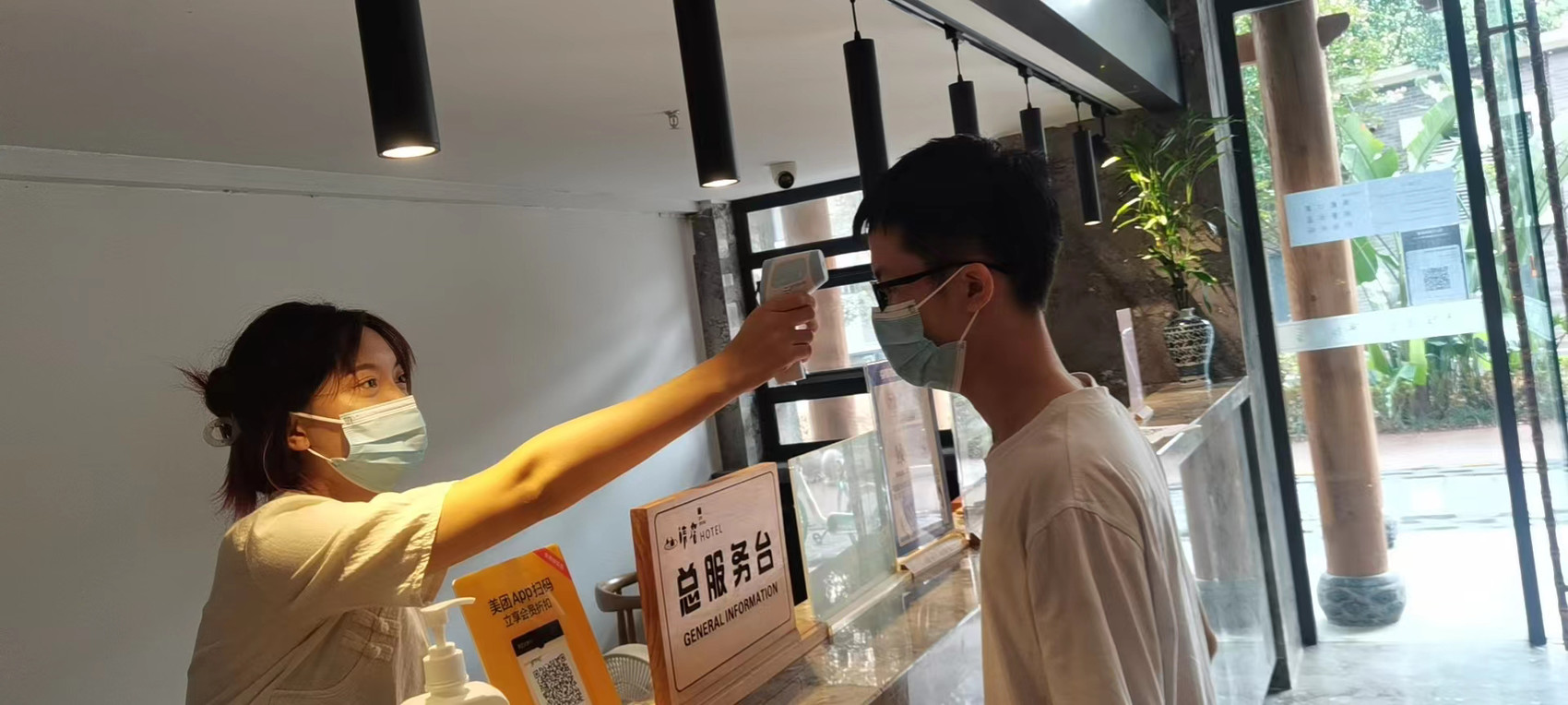 位于成都市区中心Pagoda君亭设计酒店,也依然留有部分商旅客户。总经理李敏告诉记者,在接到通知后,酒店及时将入住相关要求告知了客人,目前酒店全部采用送餐制,并按照社区要求定时通知客人进行体温测量和核酸检测。