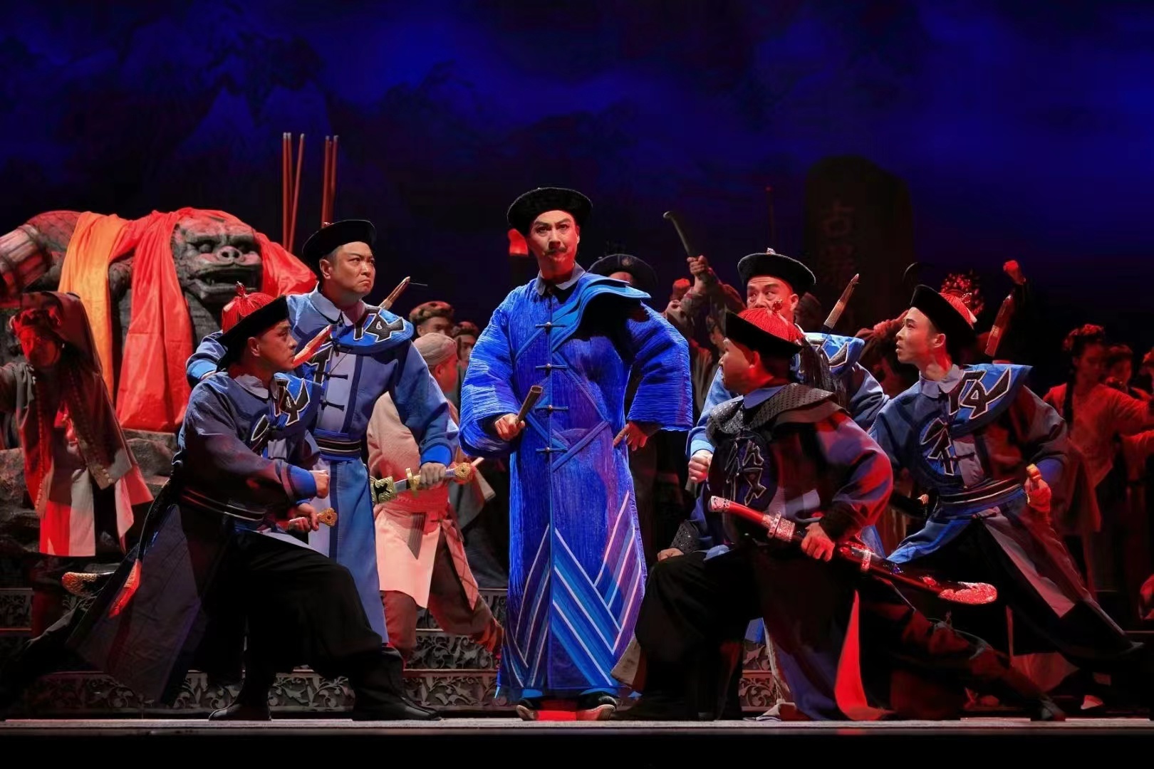 “永垂不朽纪大奎,五千生死怎躲开?初心不忘得始终,一灵不昧真如来。”川剧《草鞋县令》由四川艺术职业学院与四川省川剧院联合打造,二度梅得主陈智林携手梅花奖演员肖德美、刘谊以及李乔松、苏明德等川剧名家联袂主演。此剧讲述了清嘉庆年间,什邡高景关山民遭遇水旱之患,县令纪大奎为民解忧,面对种种困难和诱惑时,写下“离微不二”以示为民初心不改。为最终治理水旱灾害,在脱下官靴换上草鞋登临古瀑口山顶后,纪大奎终于领悟治水之道,并获得灾民信任、理解和支持。至此,纪大奎的治水之道、为官之道、君子之道“九九归一”,成为为政为民的要诀。