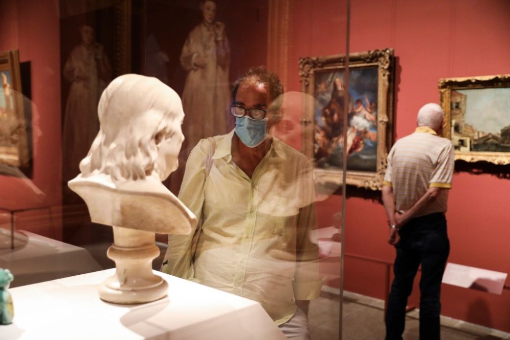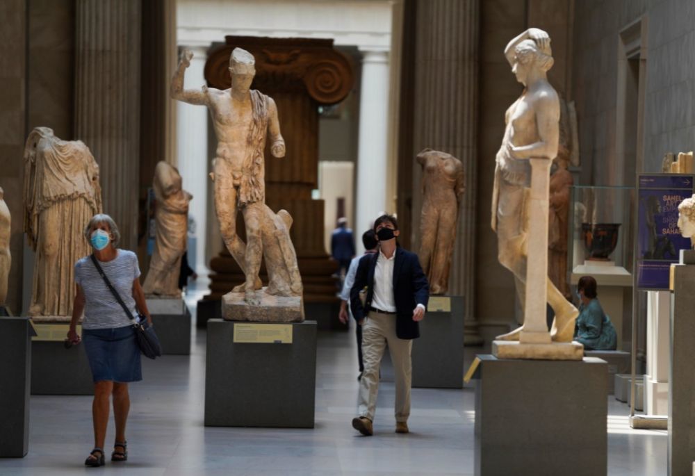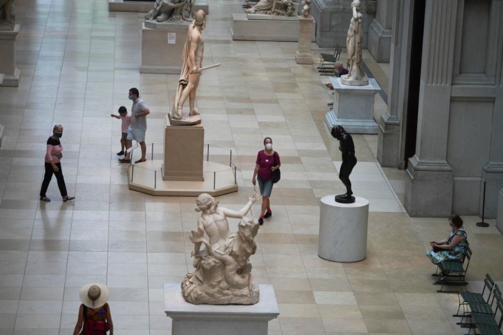 2020年8月27日,人们在美国纽约大都会艺术博物馆第五大道主馆参观。新华社记者王迎摄