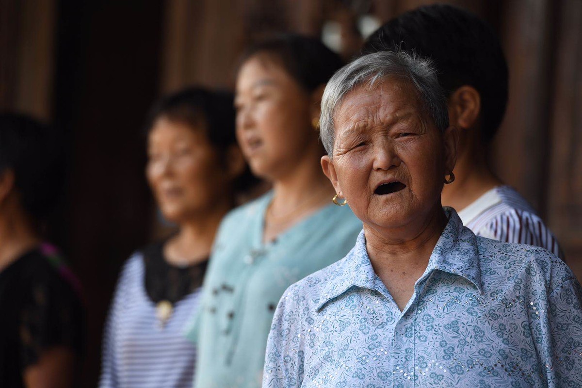 “大田薅秧行对行,劳慰情哥来帮忙,情哥不吃大麦酒,几时等来糯谷黄,糯谷黄了做甜酒,白面馍馍蘸蜂糖……”9月15日下午,79岁的景玉光婆婆起调,其他5人合声,连续唱了4首山歌。这是来自巴中市通江县泥溪镇梨园坝村的“女团”,平均年龄65岁。