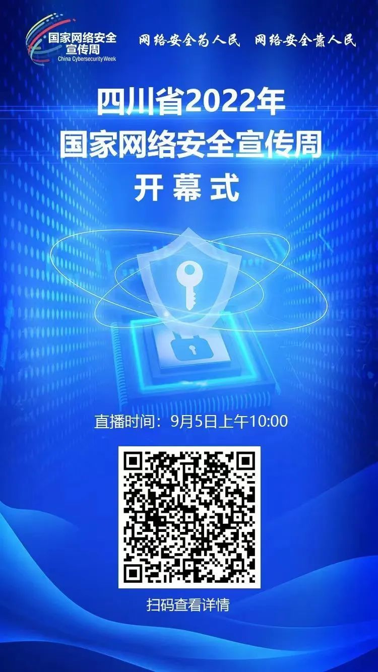 四川省2022年国家网络安全宣传周将举办开幕式、网络安全成就展、网络安全知识线上有奖竞赛、网络安全教育云课堂等活动,还将举办校园日、电信日、法治日、金融日、青少年日、个人信息保护日等多个主题日活动。在此期间,全省各地各部门将同步开展网络安全进社区、进农村、进企业、进机关、进校园、进军营、进家庭等宣传普及活动,以人民群众通俗易懂、喜闻乐见的形式宣传网络安全知识和防护技能。
