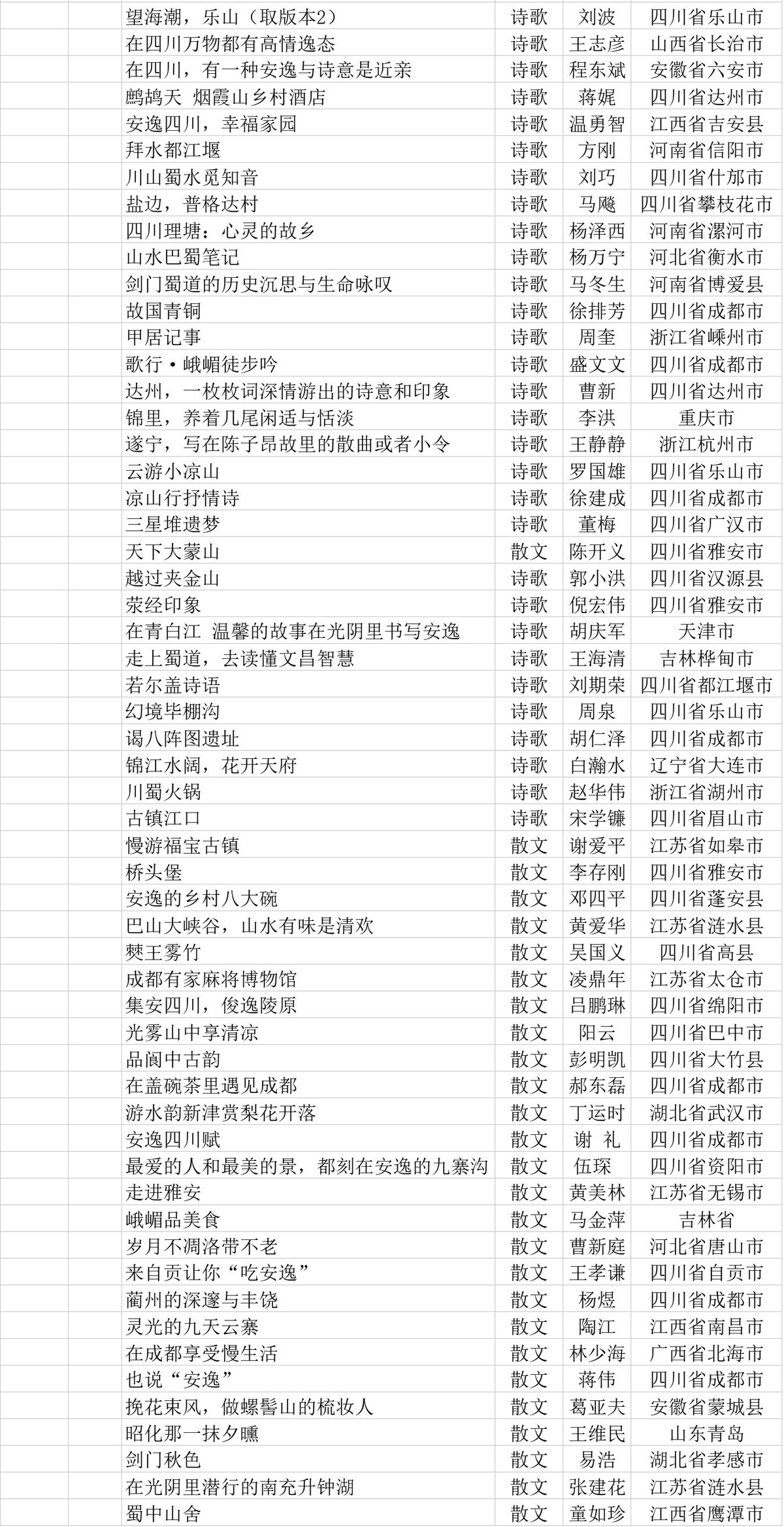 9月16日,由四川省文化和旅游厅、四川日报社联合主办的“安逸四川”线上征文活动举行终评会。按照赛前公布的参赛规则和评选办法,组委会邀请著名诗人、作家、评论家梁平、何开四、罗伟章等专家组成终审评委会。本着公平、公正、公开的原则,本次评审对进入终评的作品采取“盲评制”,抹去作者信息,仅以作品主题、导向、价值、文学性等为考量标准,最终以得票多少评出5个奖项118个获奖作品。