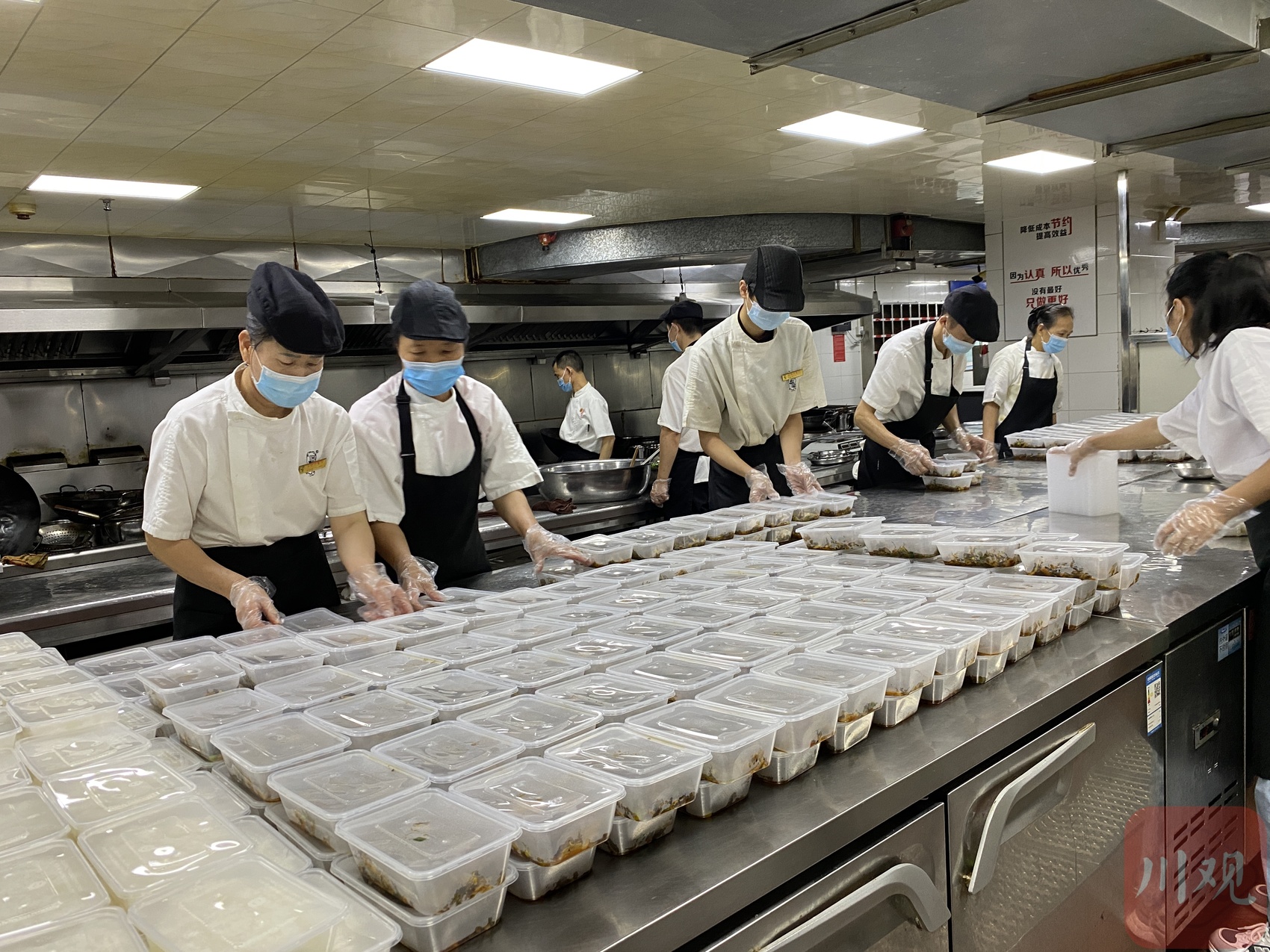 9月6日早上不到7点,攀枝花市东区宋艳华的餐馆后厨里,员工们已经忙开了。老板宋艳华再次把食材里里外外检查了一遍,“开工!”一声令下,当天的抗疫免费盒饭供应工作开始了。