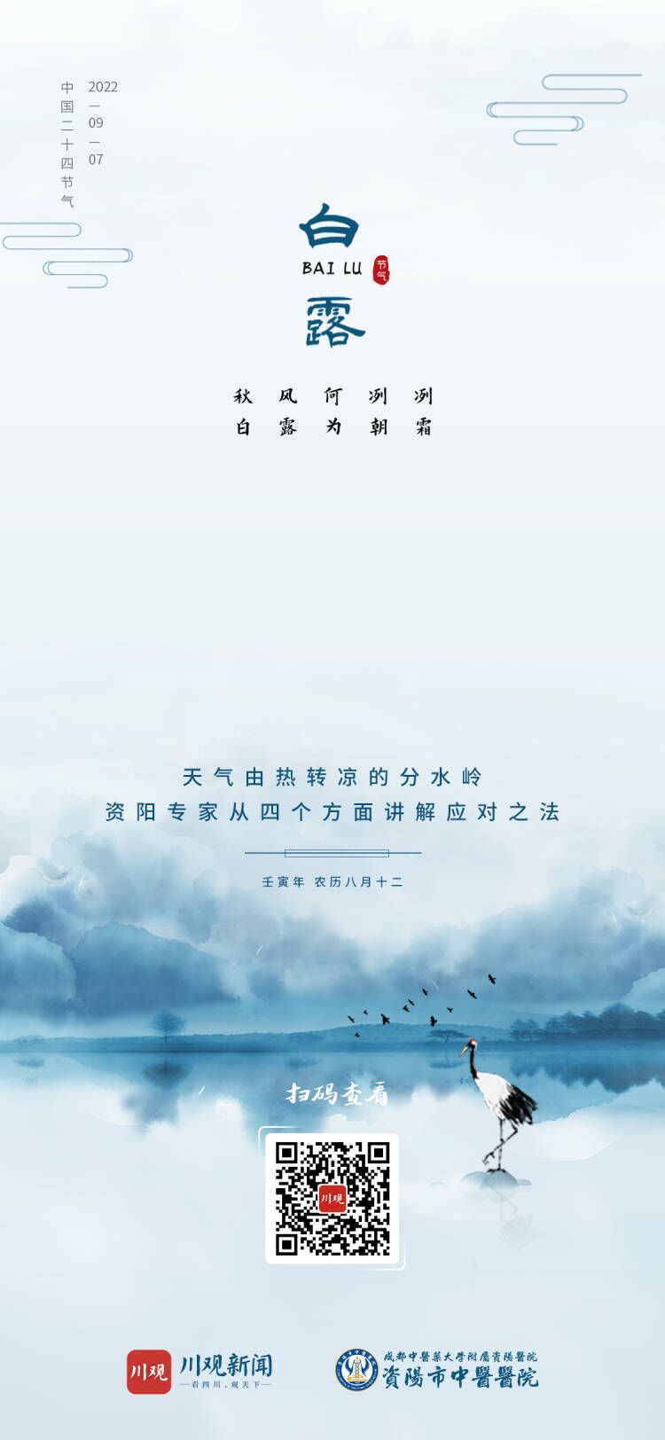 “秋风何冽冽,白露为朝霜”,处暑已过,秋意渐浓,白露如期而至。9月7日是二十四节气中的白露,是仲秋的起始,是天气由热转凉的分水岭。四川日报资阳全媒体中心邀请到资阳市中医医院药剂科中药师穆帝秀,从饮食、起居、出行、心情四个方面讲解应对之法。