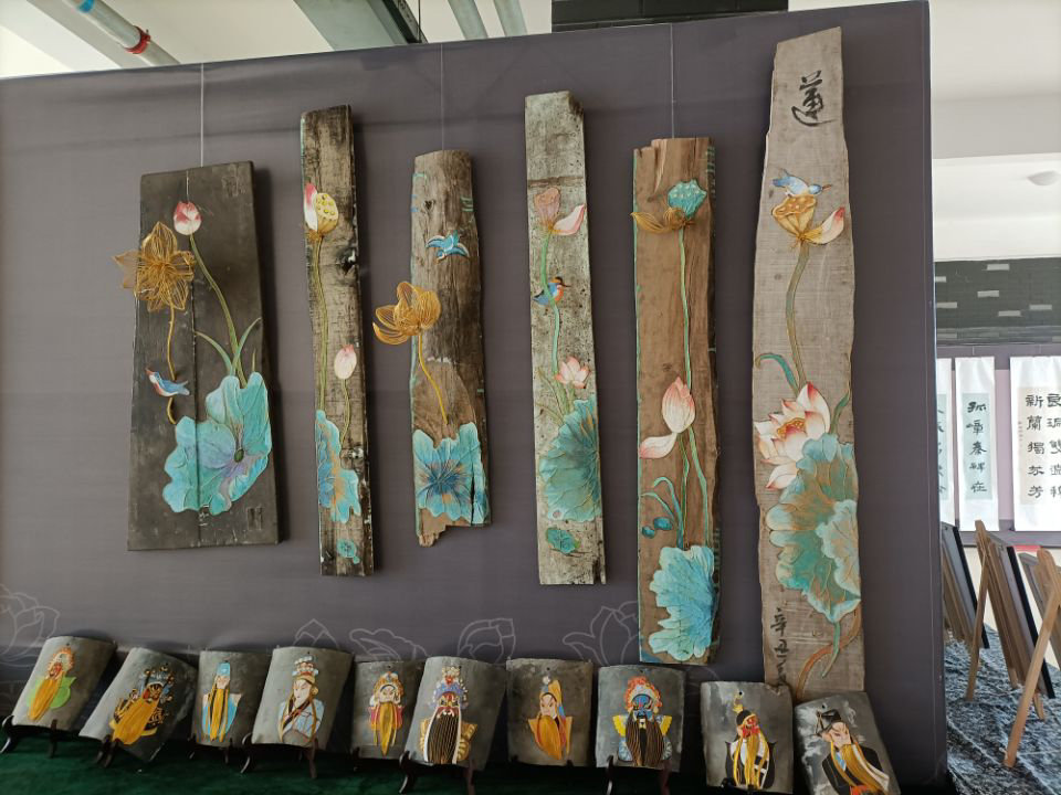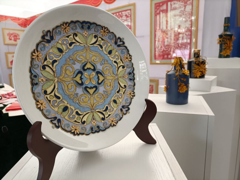 如今,工作坊里摆满了同学们的掐丝作品,一块块废弃的木头,被“掐丝”成了优美的荷花,显得灵动而有生气;一个个一次性纸盘,被“点蓝”成有创意的图案,显得熠熠生辉。