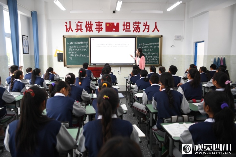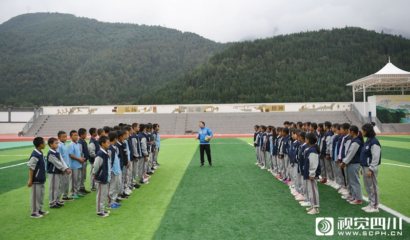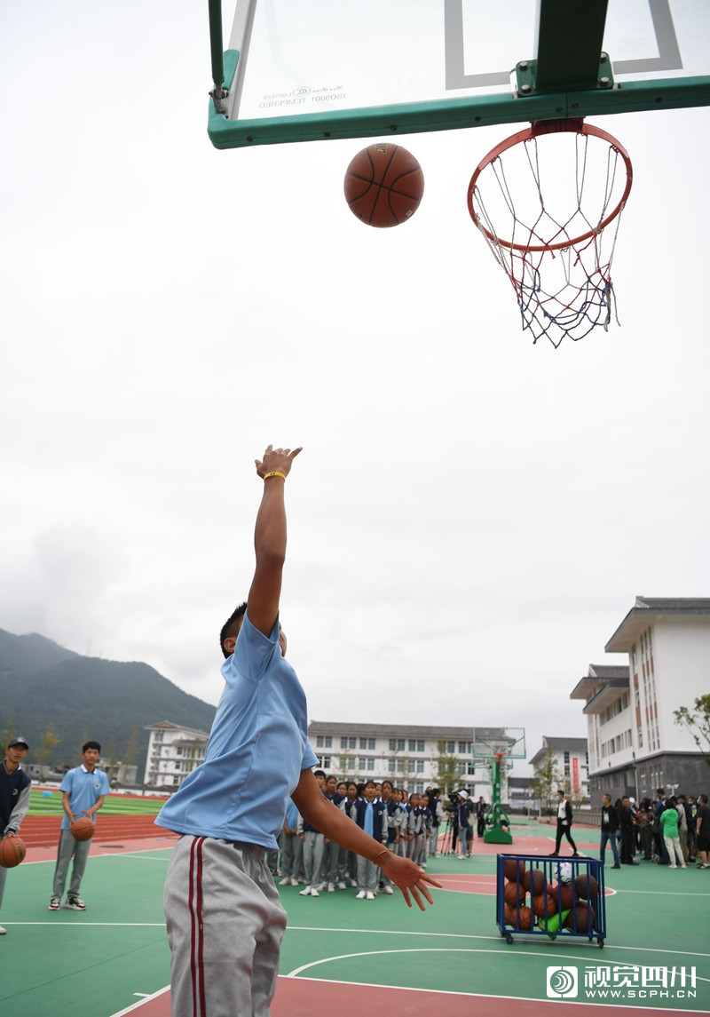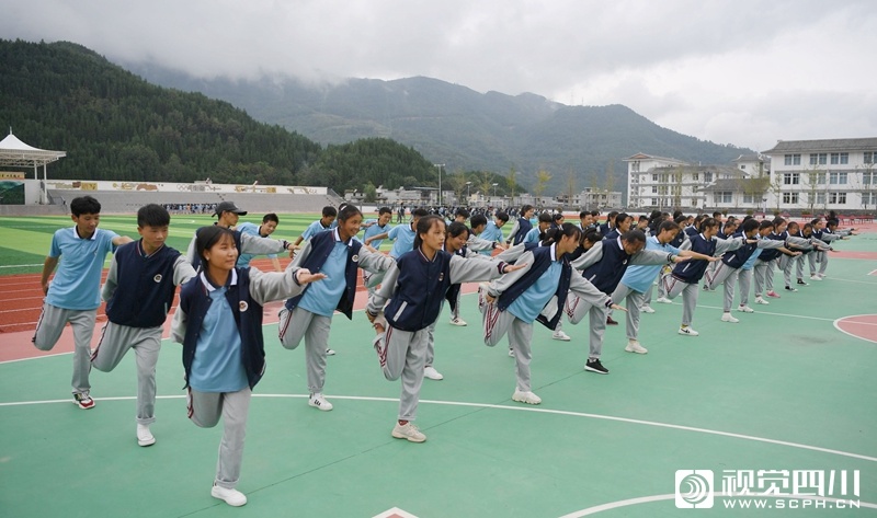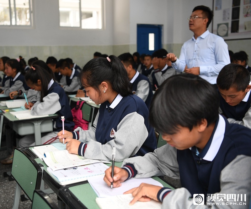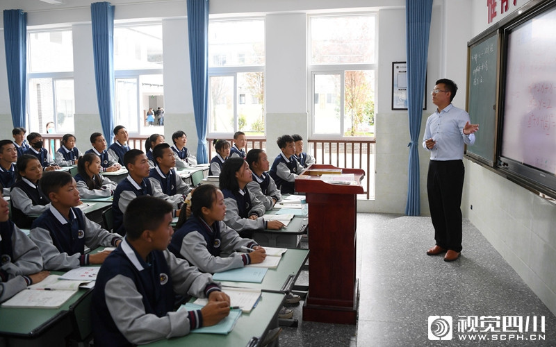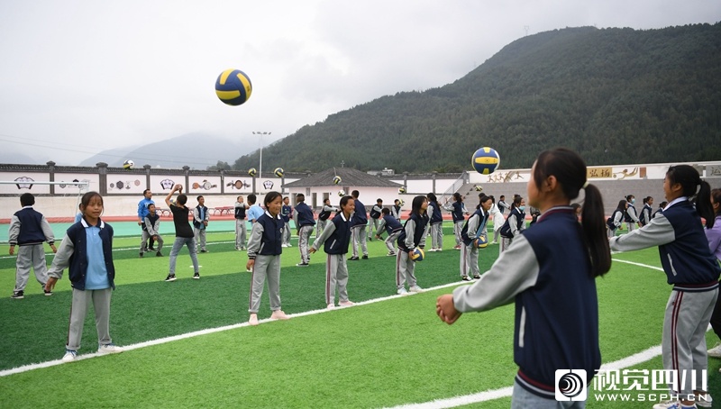 9月11日,越西县文昌中学开学后,同学们在新建设的宽敞明亮的教室里上课,在环境优美的新操场上上体育课。