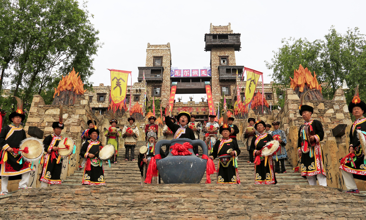 每天上午9点整,在悠扬的羌歌声中,位于茂县的中国古羌城城门缓缓打开,羌族同胞身着盛装载歌载舞,为游客活态展示羌族萨朗、羊皮鼓舞等传统民族文化。