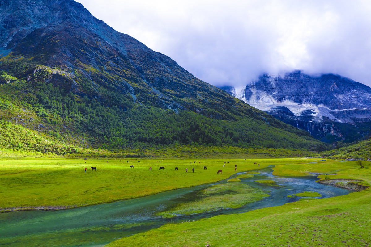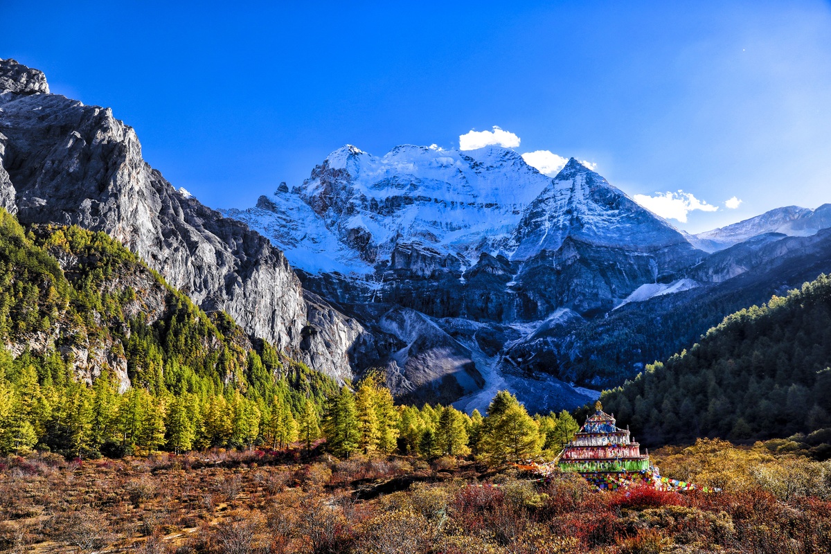 景点推荐:牛奶海、五色海、煨桑台等。五色海是藏区著名的圣湖(佛经中赞誉该湖与西藏羊卓雍措齐名);牛奶海是古冰川湖,在央迈勇山坳里,呈扇贝形,四周雪山环绕,中间是碧蓝的雪水,周边环绕一圈乳白色。